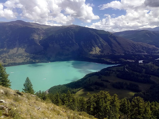 登上观鱼台可以俯瞰喀纳斯湖,大部湖面尽收眼底;可观览湖周层峦叠嶂、翠峰倒影、云起波涛的湖光山色。