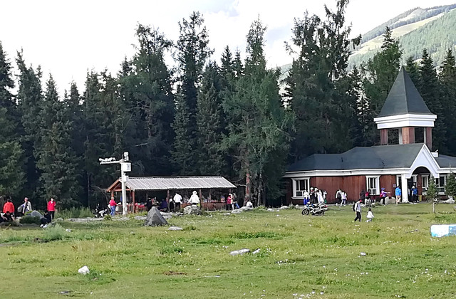 下午3点多大巴车将我们送到喀纳斯景区贾登峪,大家各自携带简单行李进入景区。计划在景区老街住宿两晚,大巴车不能进入景区,两天后装载着行李,仍然在这里接上我们继续旅行。