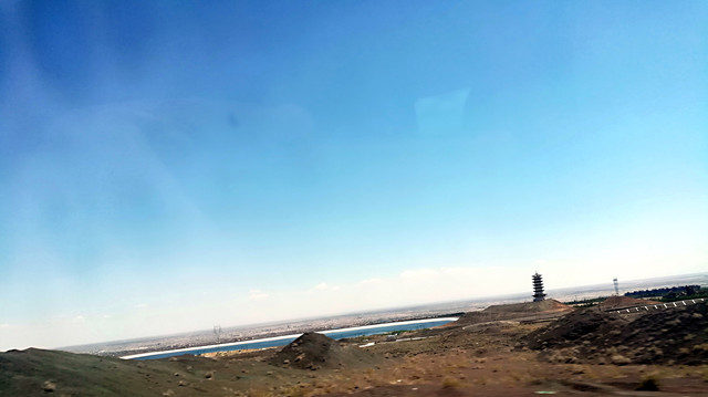 途径克拉玛依市区外,看见路旁的高地上建有不少蓄水池,应该是城市生活用水的一个水源地吧。