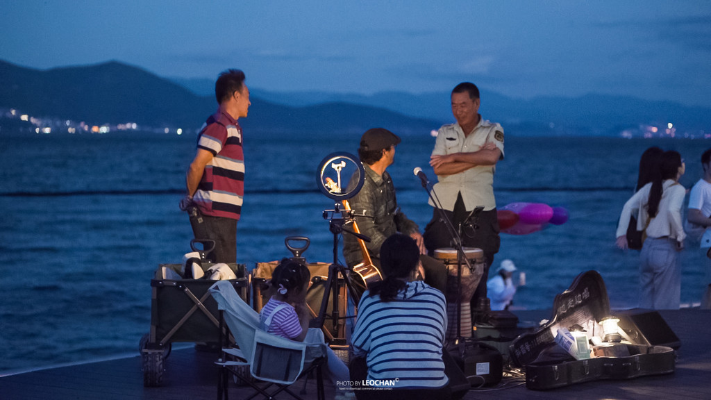 伴随着夜色降临,晚上的歌手乐手们也都出来驻场,很多经过的人会停下来,或坐在旁边,听着歌哼着小调,品着小酒,慢慢感受这洱海边的微风,甚是舒服~