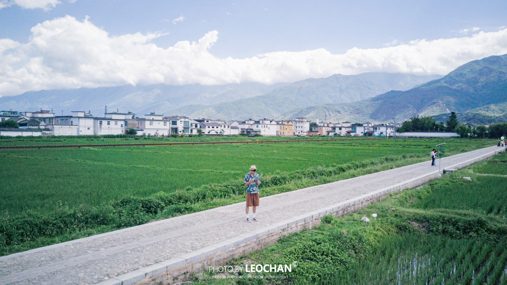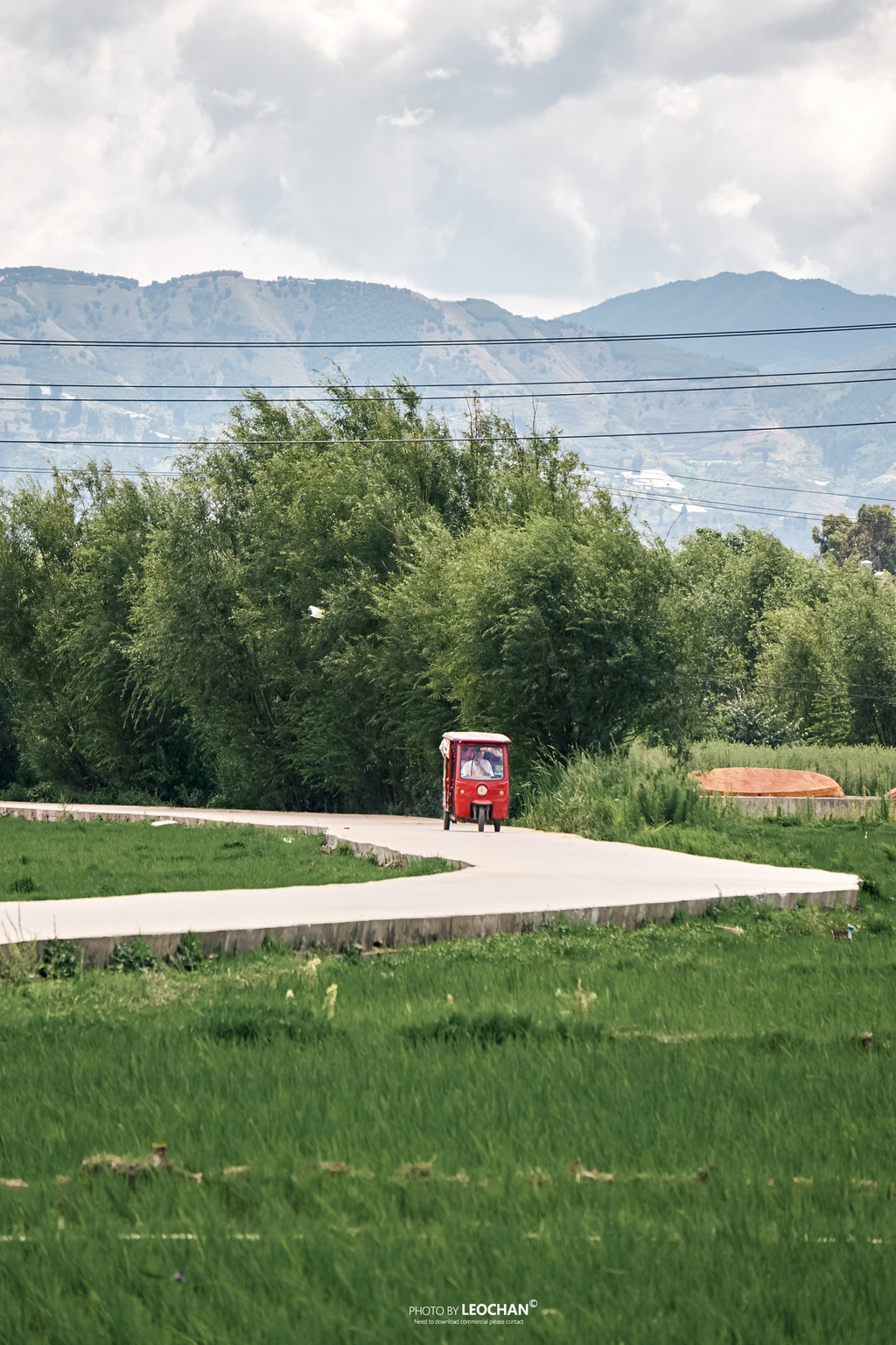 所幸这次的村道刚好适合我们的车穿过去,一下子就到了喜洲古镇的网红稻田区域~
