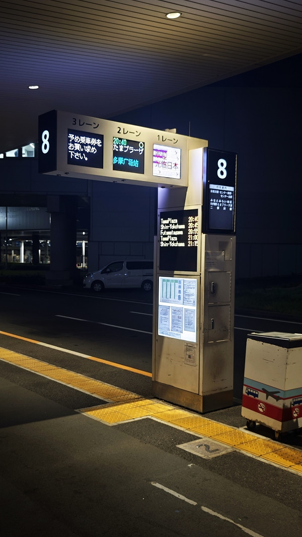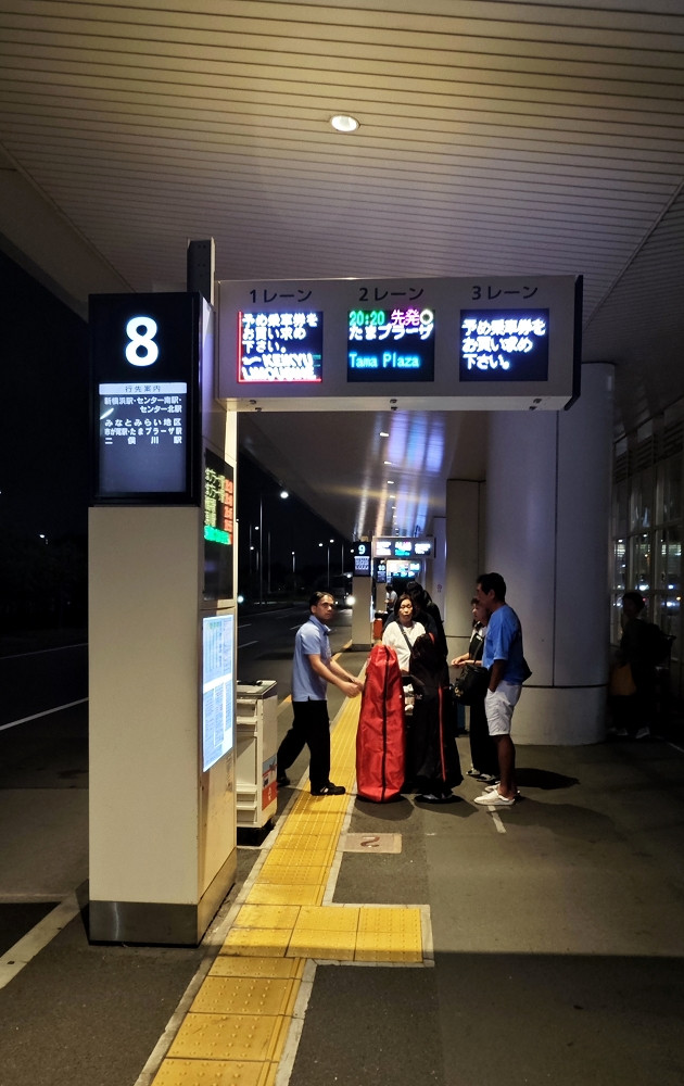 在巴士售票台买了20:45去新横滨站那班车的票(1000円/人),到八号站台等候。