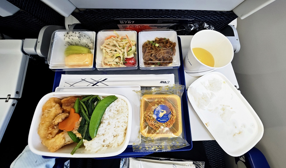 飞机餐非常丰富,贴心的ANA为每一位乘客配了一款迷你月饼,让乘客能在万米上空开心度过中秋节,很赞!