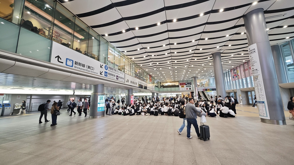 今天是日本的体育节,所以见到很多中学生集体出游,一批又一批的学生在拍集体照。