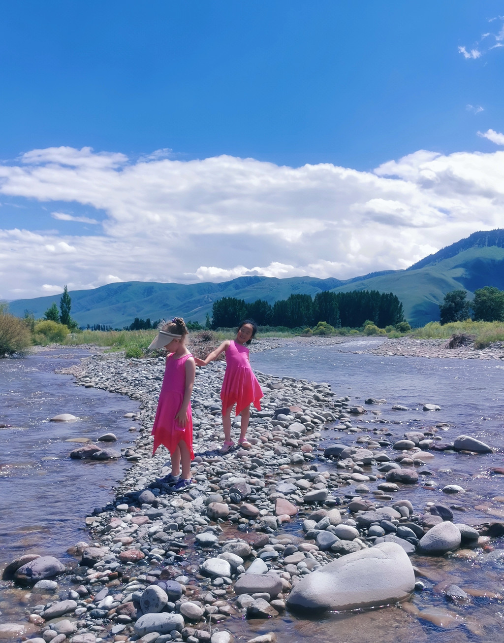 另辟蹊径,远离游人。在巩乃斯河里戏水、垒城堡、吃瓜…