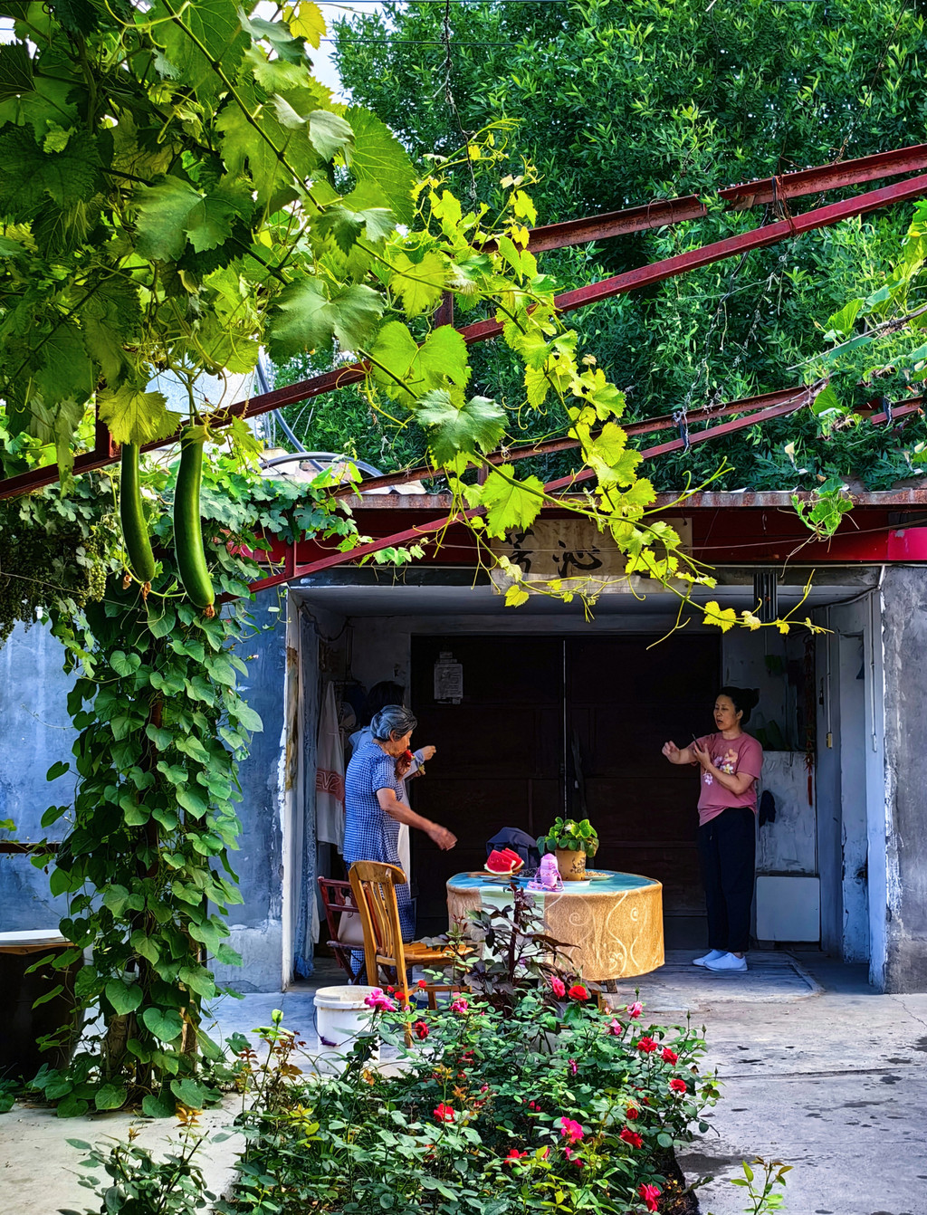 🦆外婆实现了瓜果蔬菜、鸡鸭鹅自由。食材都来自小院地里,玥想吃个番茄土豆丝,自己到地里摘了两个🍅,递给外婆;