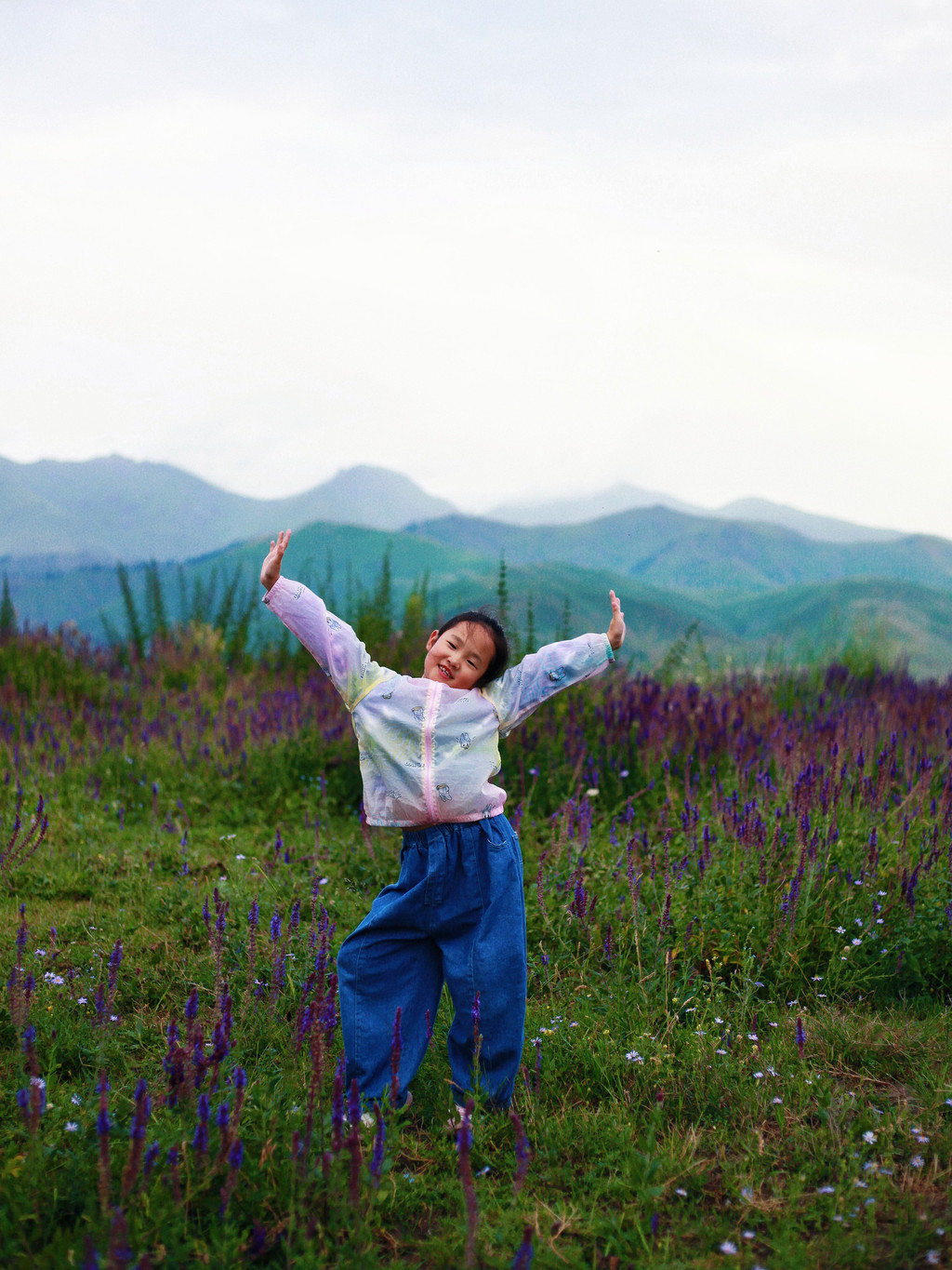 发小带我们另辟蹊径,一条人迹罕至之路,一路山花烂漫,到达山顶哈萨克族生活的夏牧场。