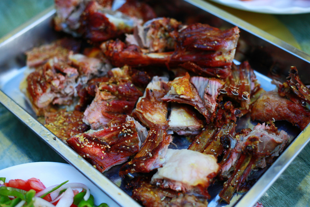 🚗在人山人海游人的那拉提,带我们独辟蹊径赶大巴扎买了一只羊、晚餐就是这只羊;当地市场吃烤包子、烤肉黄面;