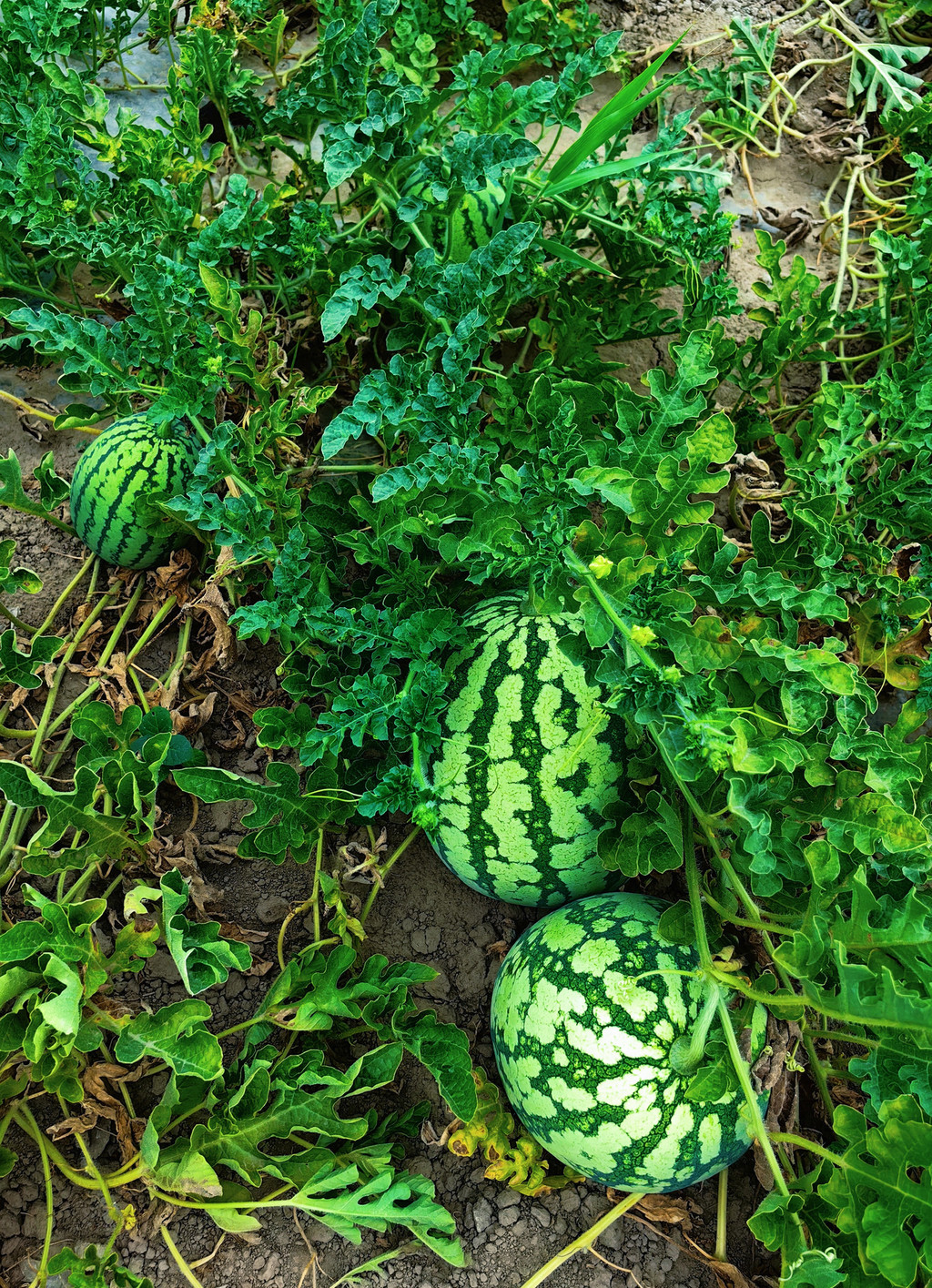 瓜田里捡瓜。头一回看到满地的瓜,瓜比脸大,边捡边吃,不亦乐乎。