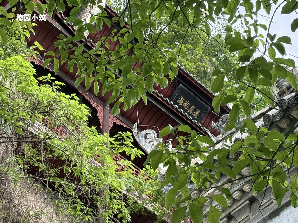 玉皇阁犹如一顶金冠戴在中和山绝壁之巅,需攀三折近乎垂直的石阶方能抵达。飞檐层层递进似要凌空飞去,二十八根木柱半嵌岩体半悬空,风雨廊窄得需侧身而过,栏杆已被摩挲得温润如玉。正午时分,穿堂风自舞阳河面溯流而上,吹得梁间风铃碎响如磬。几位游人坐在槛凳上纳凉,供桌前穿汉服的姑娘举着自拍杆转圈,裙裾扫过明代青砖惊起细尘,电子莲花灯与百年铜香炉在镜头里相映成趣。守阁道人靠在褪色的盘龙柱旁打盹,蒲扇盖着脸,道经摊在膝头。有香客往功德箱投纸币时他才懒懒抬手:“心到神知,随意就好。”梁上悬着“普济苍生”的匾额,落款是万历年的知府,金漆剥落处露出楠木本真,恰与阁下流淌了六百年的舞阳河水一般,沧桑里透着从容。
