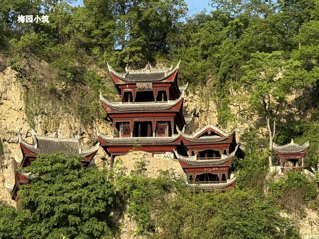 山门前的石阶被晒得发烫。抬头望去,玉皇阁、吕祖殿、紫阳书院等建筑层层叠叠,从河岸一路攀至六十米高的山腰。这些始建于明洪武年间的建筑群,竟在长约三百米的狭长悬崖上,错落着布置了三十多座楼阁殿宇,堪称建筑史上的奇迹。