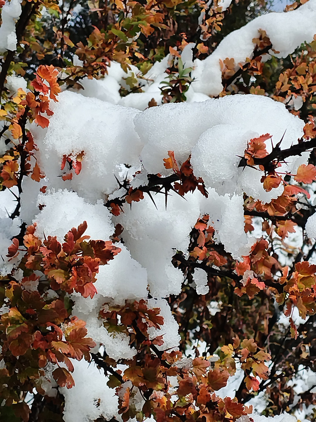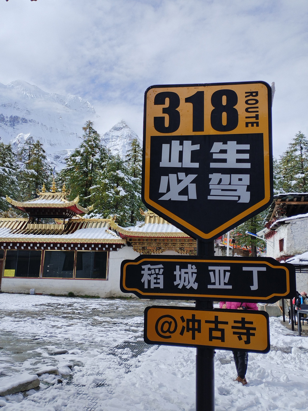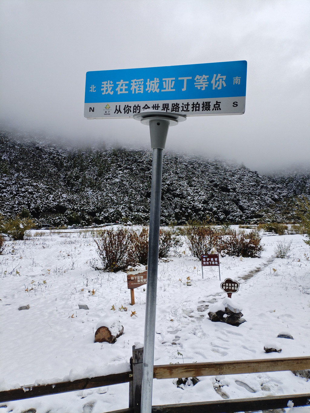 等我们从观光大巴下来时,雪却停了。景区的道路、树木、房子等,都覆盖着厚厚的白雪!昨天那个金黄的稻城亚丁消失了,呈现在我们眼前的是一个浪漫的冰雪世界!稻城亚丁的色彩,也善变!