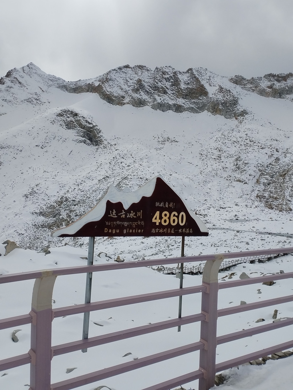 我们在达古冰川上游玩了一个多小时,然后就坐缆车下山了。雪峰、泪湖、岩石、红杉林慢慢地离我们远去。但阿李不会忘记它们,尤其是不会忘记像大自然眼泪的泪湖。