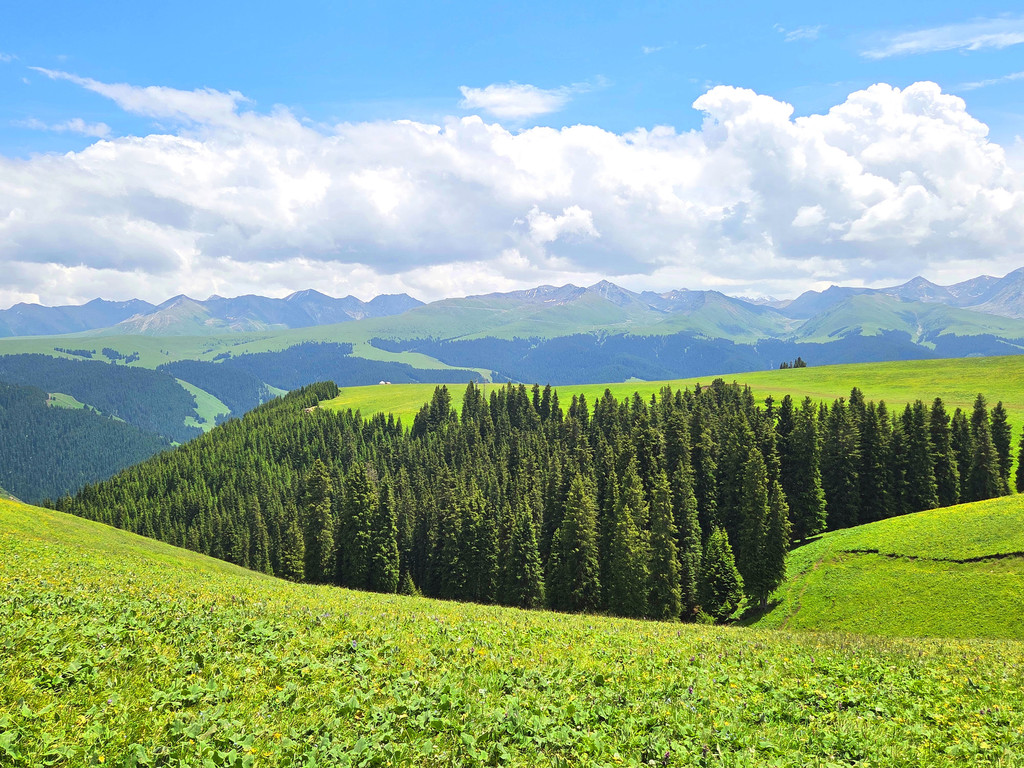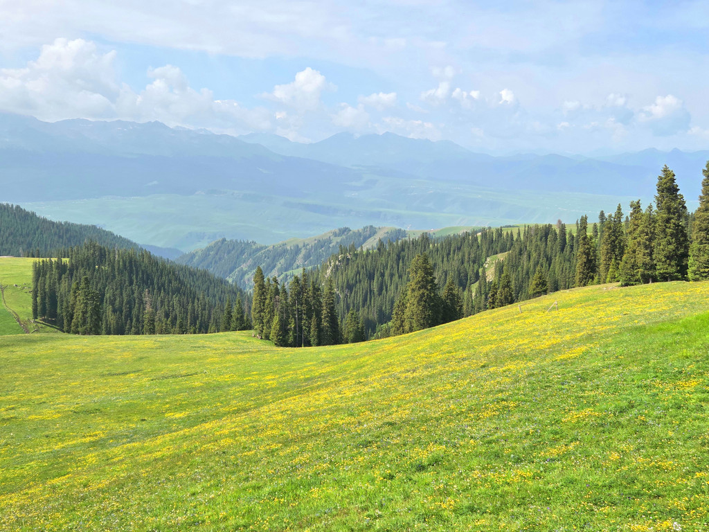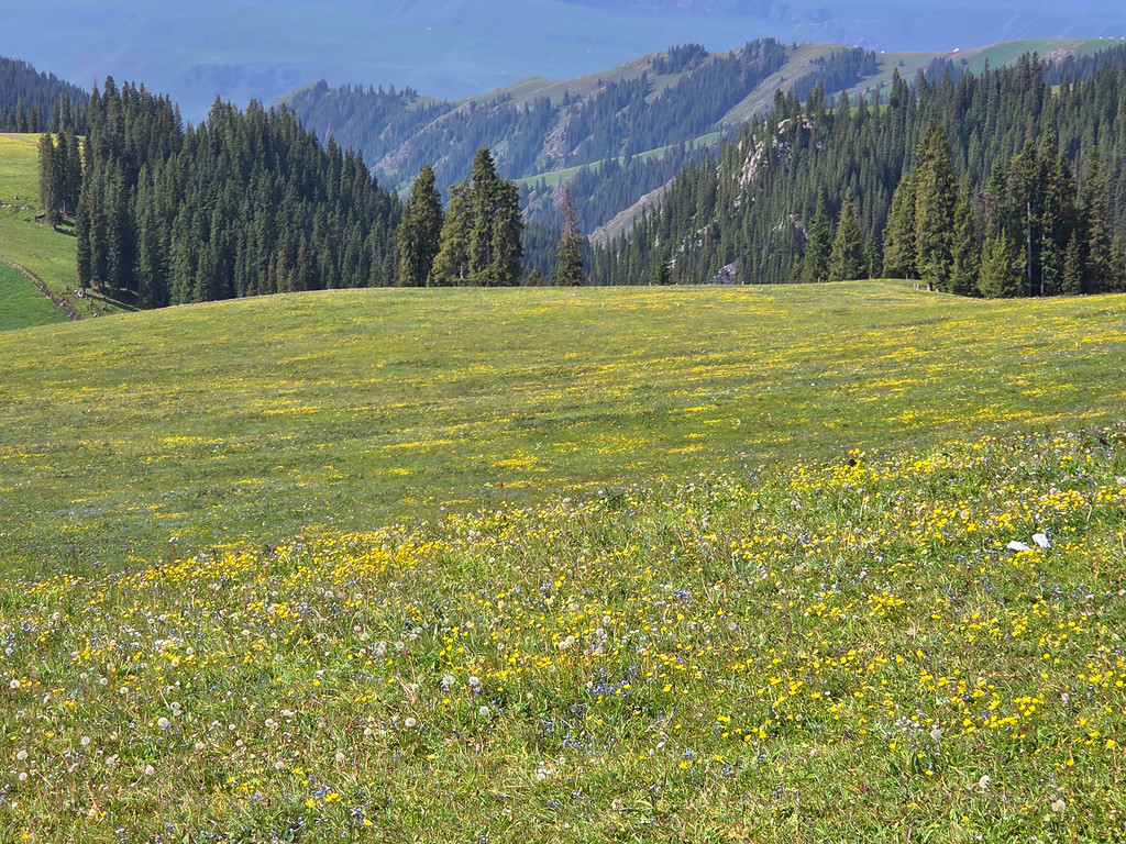 6、在伊犁河谷、喀拉峻周边还有几个很热门的景点,就是库尔德宁、琼库什台和恰西。虽景色因地貌和环境不尽相同而各具特色,但有一个共同特点就是非常靓丽,是很值得安排好时间前去游览的。因以前来新疆时都有去过,这次因时间的关系就再没有一一重游了。