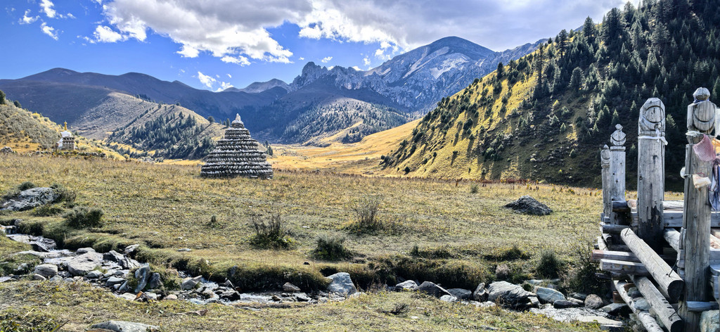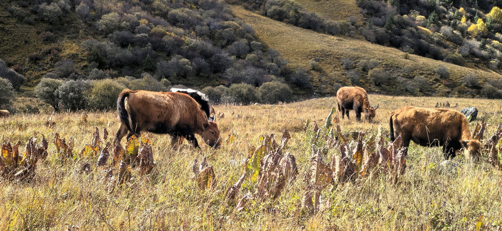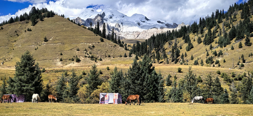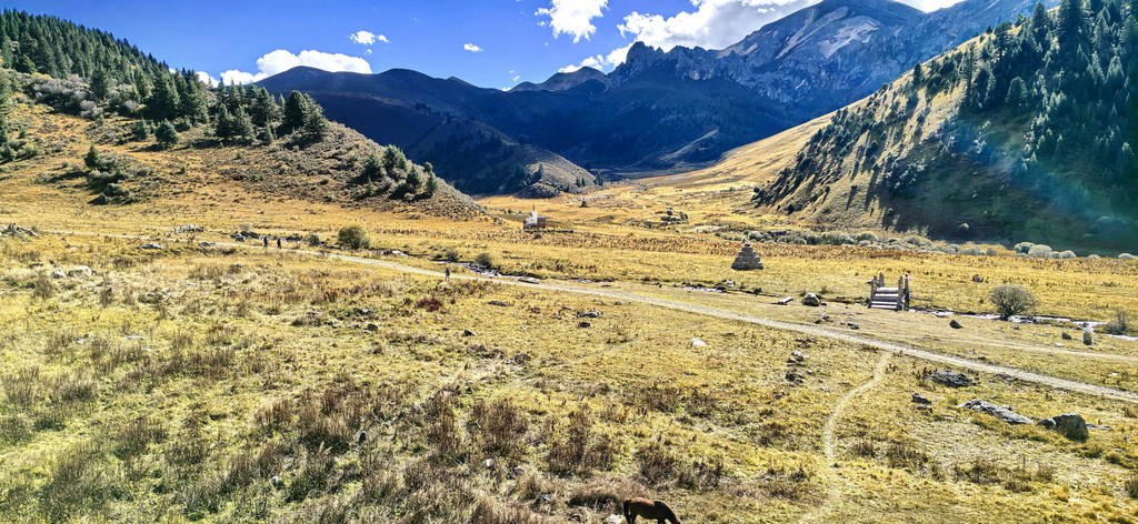 沿途我们放弃了计划中“一棵树”和“老冷古寺”两个需要骑马登高的徒步景点,给我们多出了很多时间。“一棵树”需要骑当地牧民的马上山,往返三小时;“老冷古寺”也同样需要骑马往返2小时。