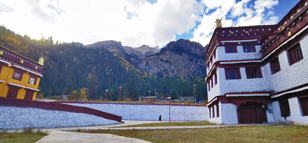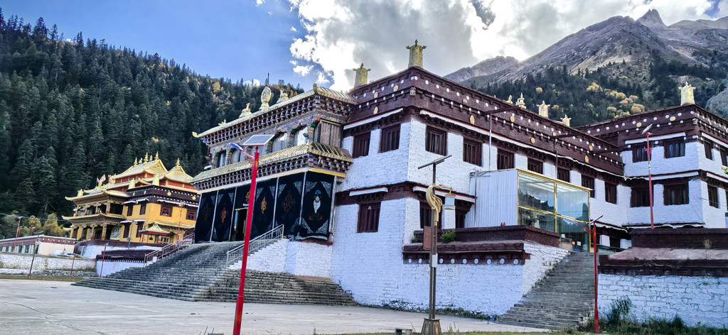 回到村里,感觉则巴村比较乱,住宿条件有限,我们打算继续前行,半小时就到了新冷古寺。冷古寺有新老之分。老冷古寺位于格聂神山主峰下的山谷中,海拔约4800米,距今已有1000多年历史,由藏传佛教噶举派创始人玛尔巴大译师的弟子修建,是康巴地区最古老的寺庙之一。老寺因地处高海拔、交通不便,且历经岁月侵蚀,部分建筑已损毁。于是修建了新冷古寺。通往老寺的道路崎岖,需穿越原始森林与乱石滩,但沿途可欣赏到格聂神山的冰川、湖泊等极致自然景观,被徒步爱好者称为“格聂南线的灵魂之地”。