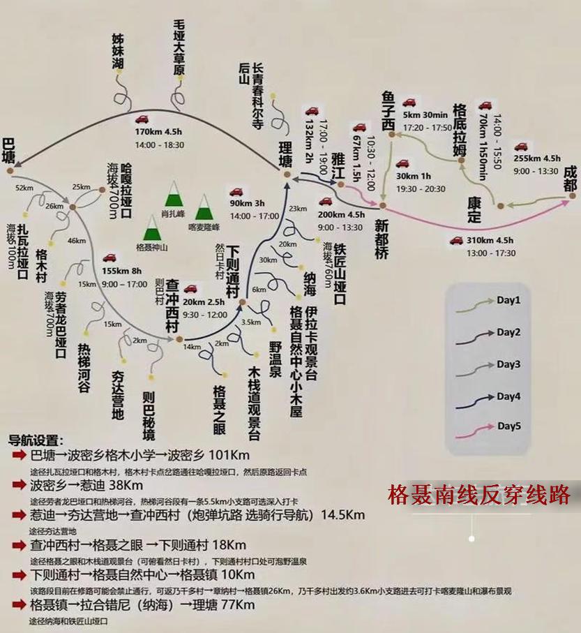 川西以独特的地理环境以及无与伦比的风景,吸引我们多次踏上这迷人的旅途。川西大环线、小环线、北线、西线我们游历过多次,每次都流连忘返。此次,我们决定闯一闯格聂南线,这条深藏于川西高原的越野级自驾路线,以原始的荒野风光、极致的海拔落差和变幻莫测的路况,成为无数越野爱好者的心头好。多番斟酌,我们选择了从巴塘反穿格聂,一路向东,翻越崇山峻岭,最终抵达理塘。这不仅是对车辆性能和驾驶技术的考验,更是需要勇气面对高海拔、复杂天气和未知路况的各种风险。