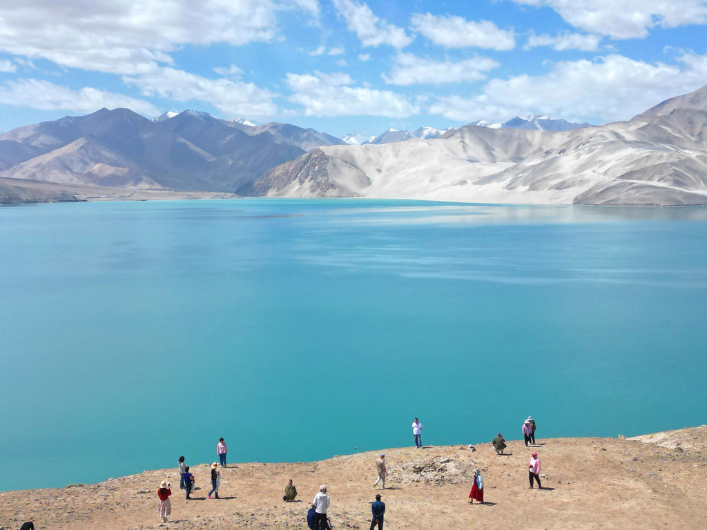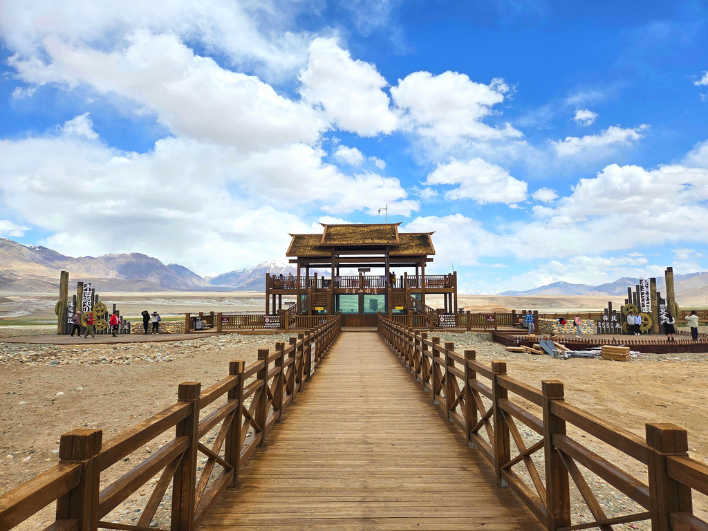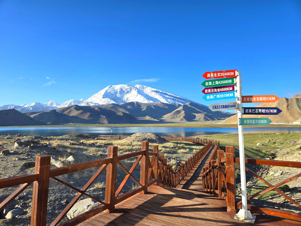 下午继续沿着喀喇昆仑公路来到塔什库尔干县,重点是游览和体验盘龙古道,还有游览沿途的塔合曼湿地公园和班迪尔蓝湖等。