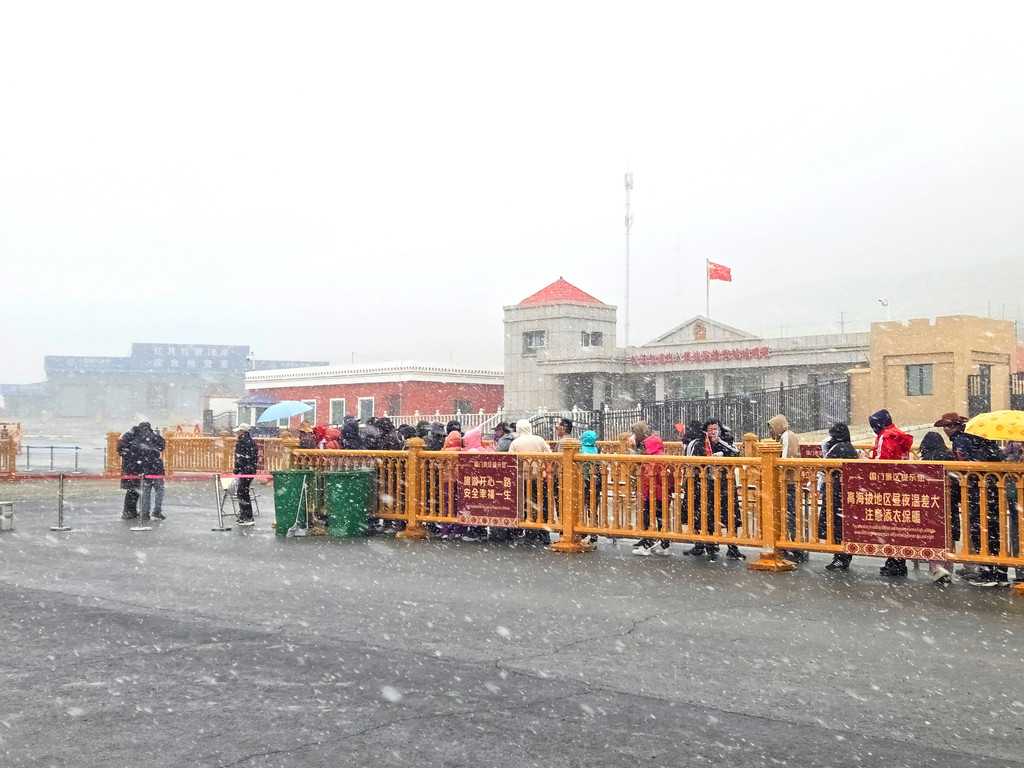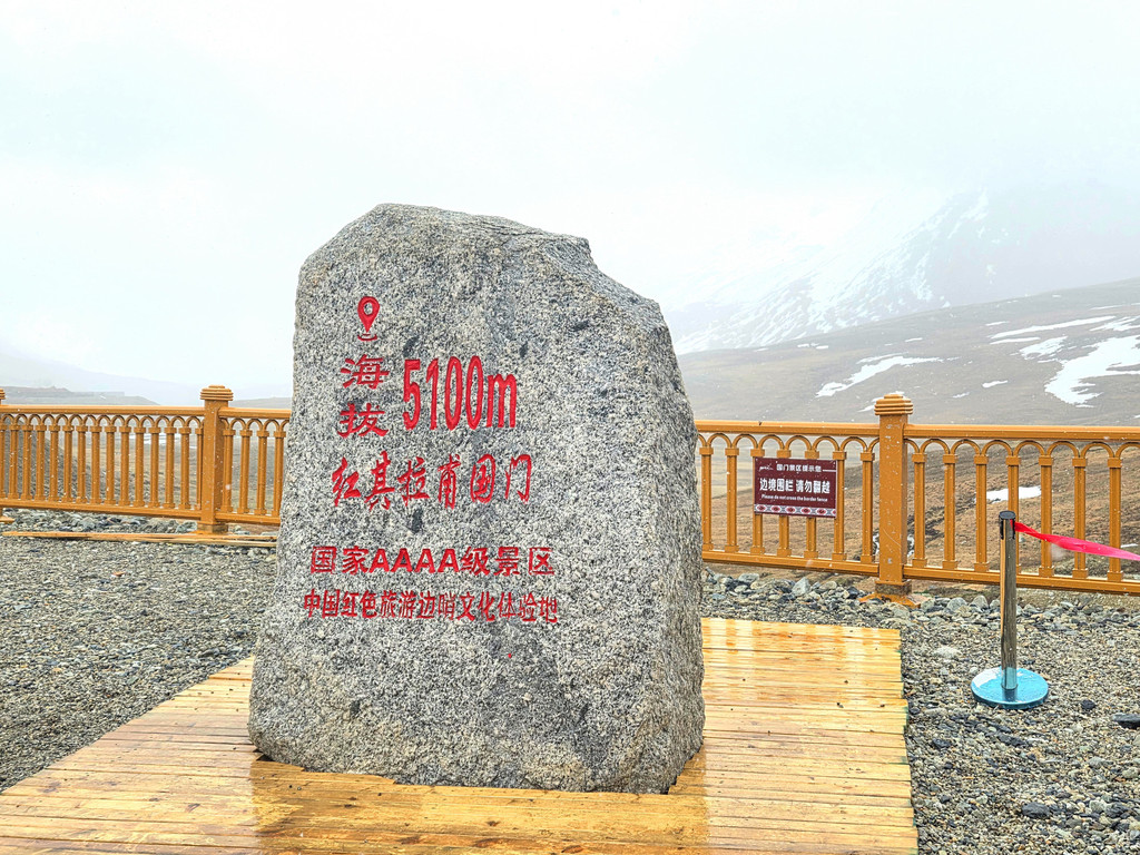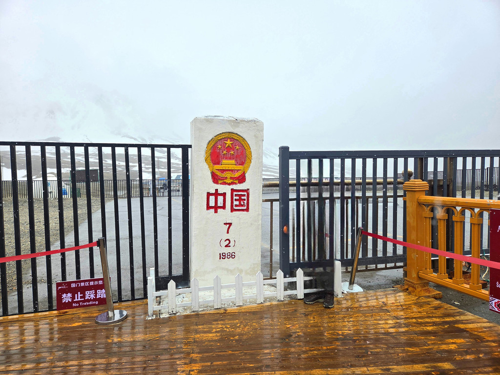 今天气温比昨天下降了许多,在国门景区还遇到了雨夹雪,凛冽的寒风扑面而来,但5100米的海拔高度和恶劣天气,仍然阻挡不了人们向祖国庄严的国门和日夜守卫边疆的战士们致敬的情怀,景区里的游人特别是跟团游的人一波接一波,大家有的兴奋地挥舞国旗,有的兴高采烈地争相与国门和界碑拍照合影留念。看到这一幕幕的情景,让人自豪感油然而生。另外,这也应该是新疆旅游热的一个缩影啊。