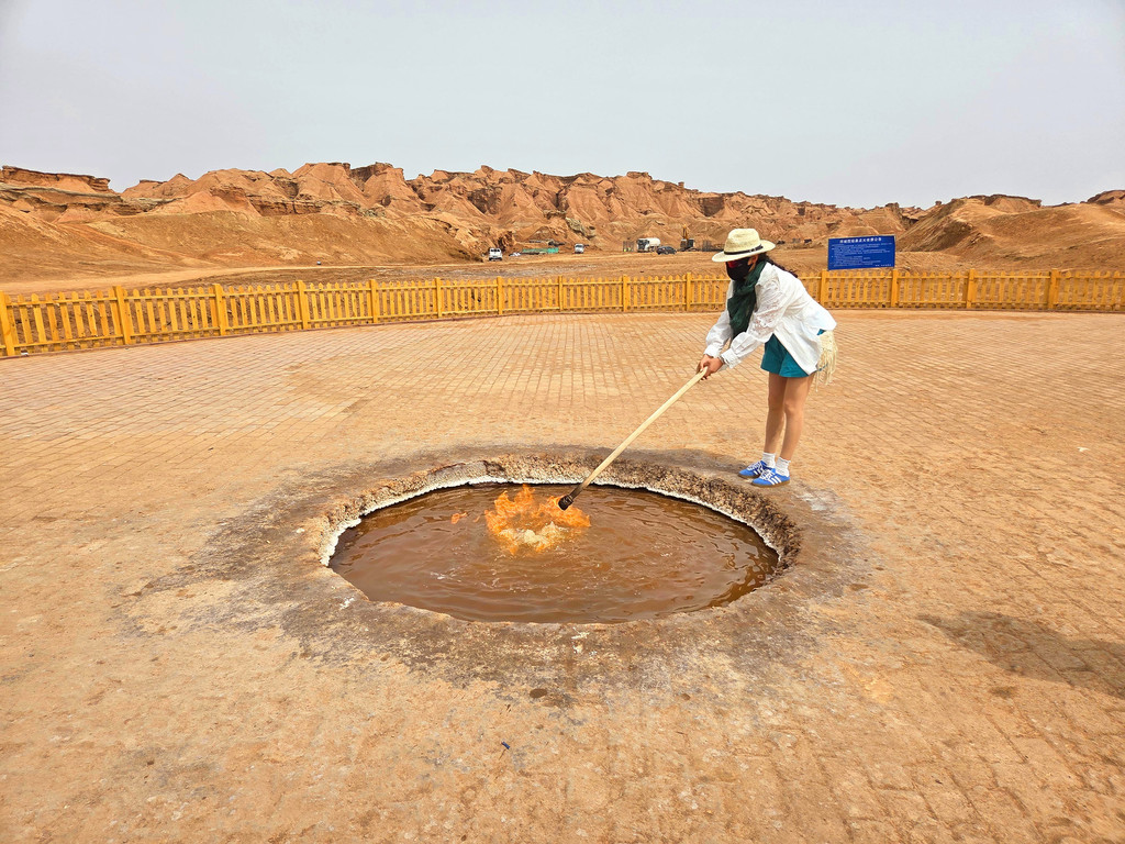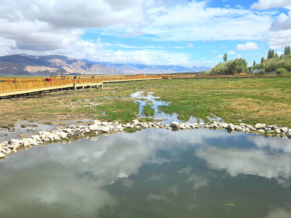继续往木吉湿地泥火山群景区的方向走,沿路可以观赏到连片的湿地,很养眼。火山群景区2023年才建成开放,因为要专程驾车过来,来回140公里需耗费好几个小时,所以景区游人不多,但这里景观独特,体验感不错。