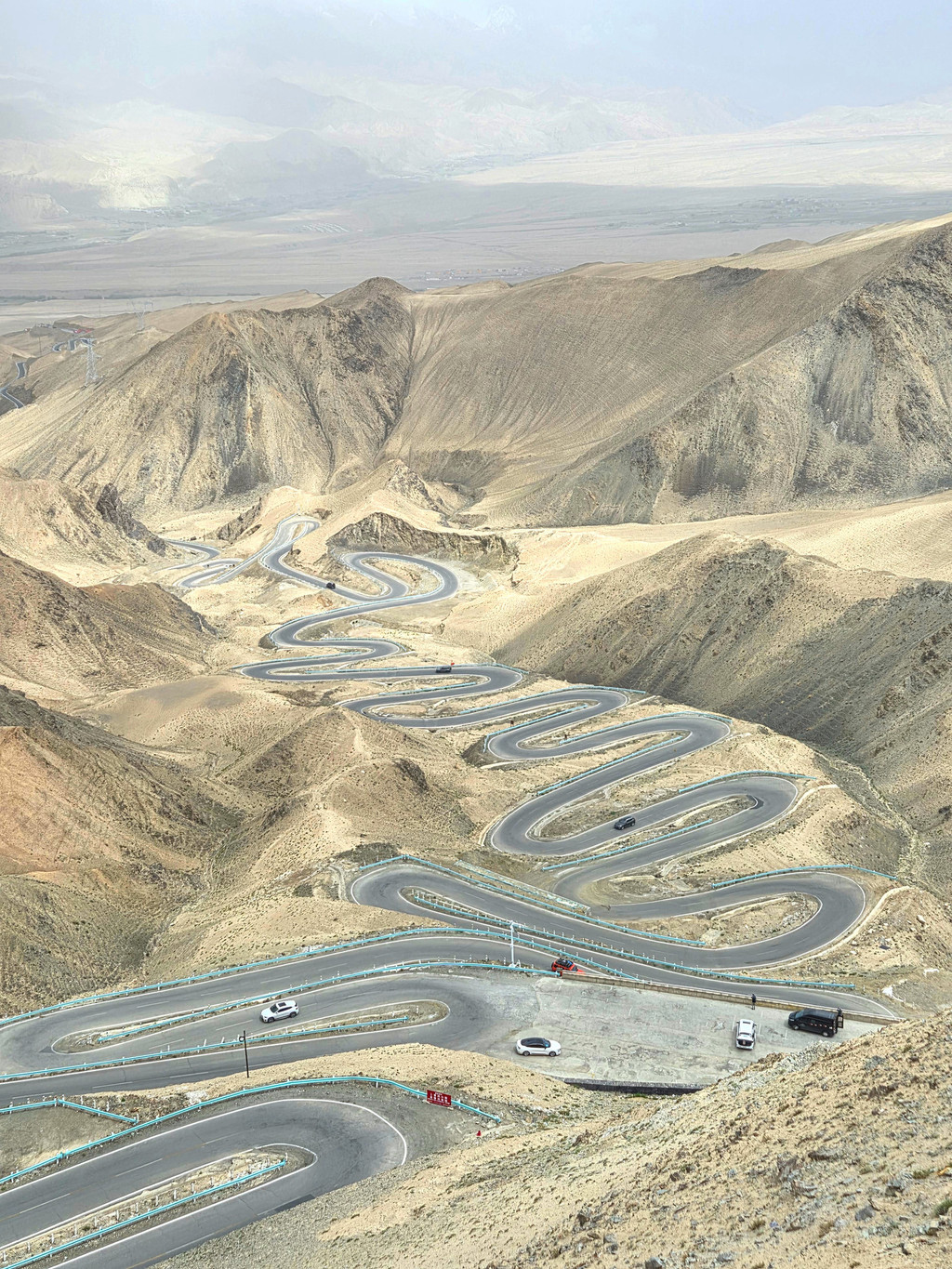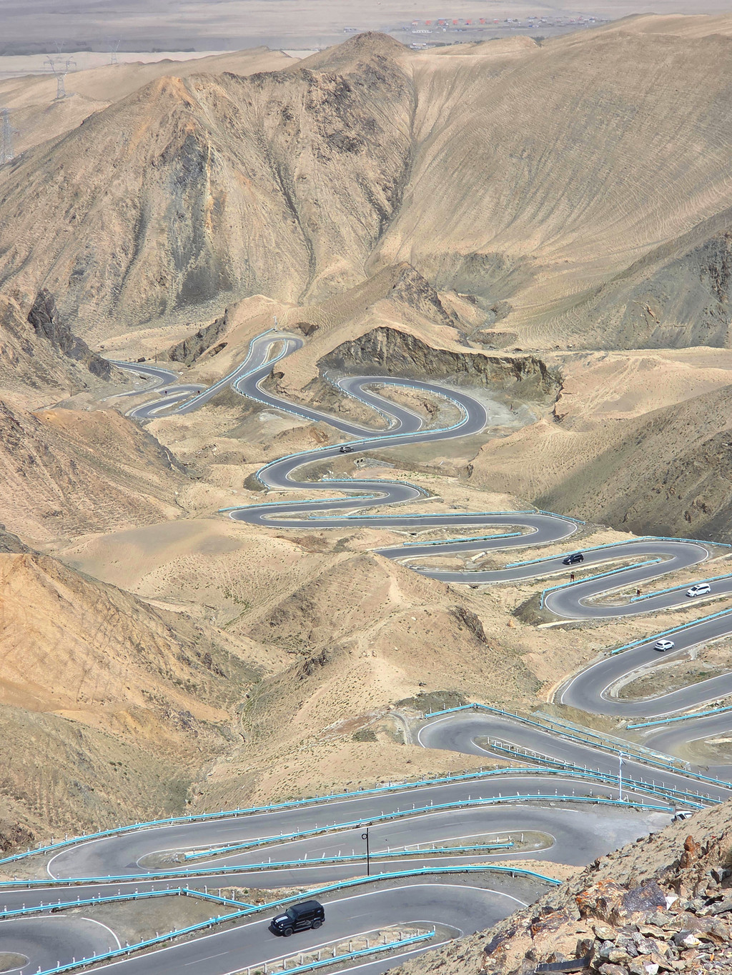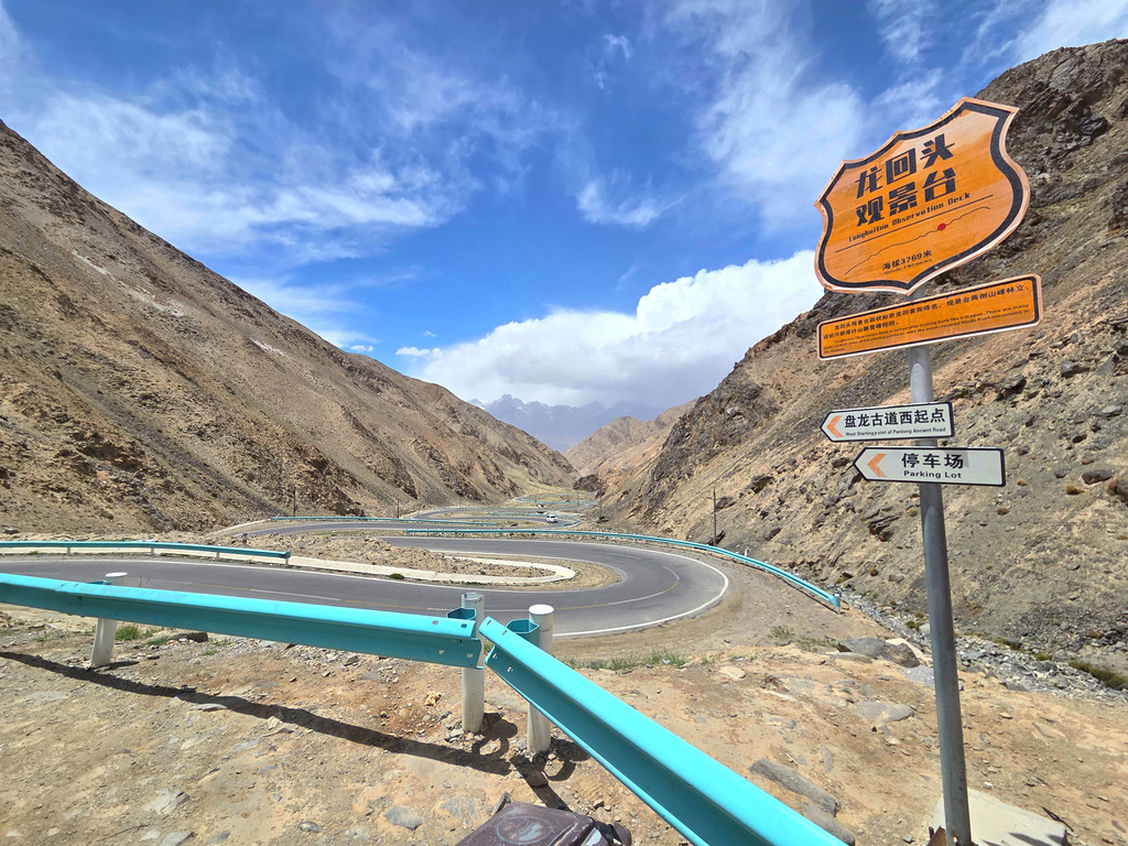 于2019年7月开通的盘龙古道,是位于塔什库尔干县瓦恰乡的一条网红公里,全长36公里,共有608个弯道,海拔4100米。它蜿蜒而下,依山脊而建,从空中俯瞰,似一条黑龙盘绕在山间。因受天气影响,每年3月通车,11月左右关闭。