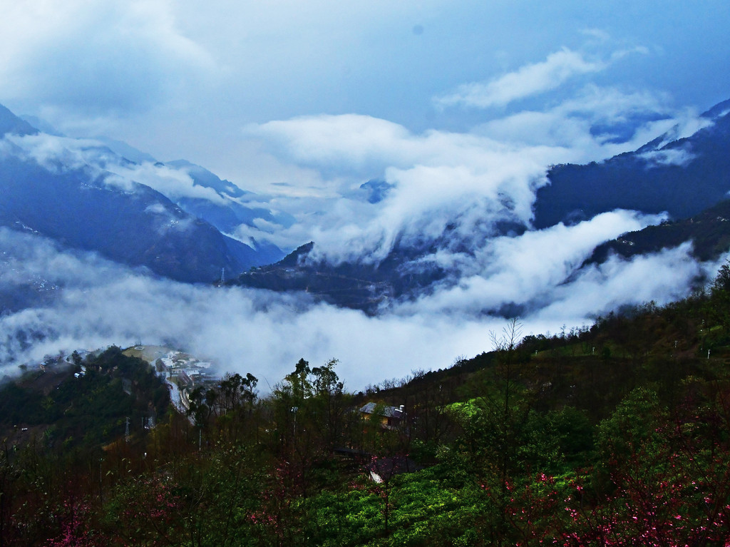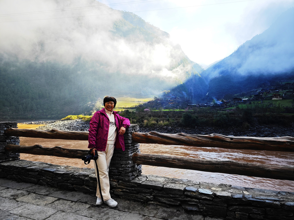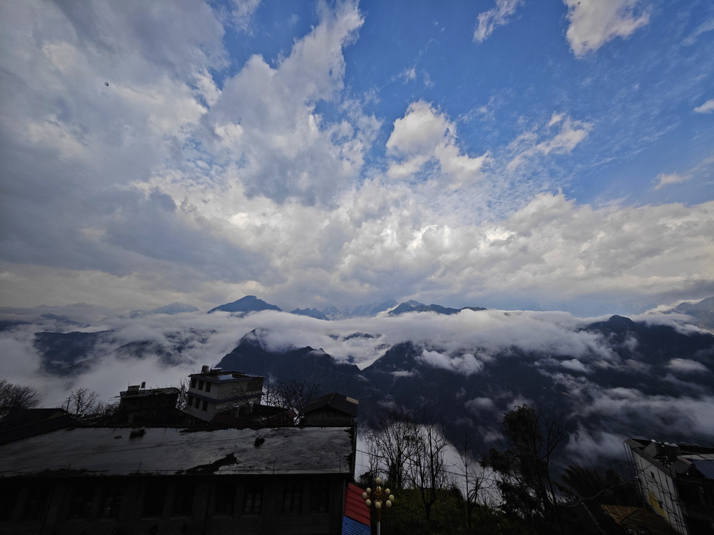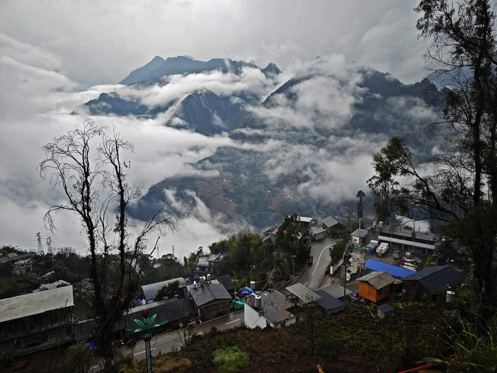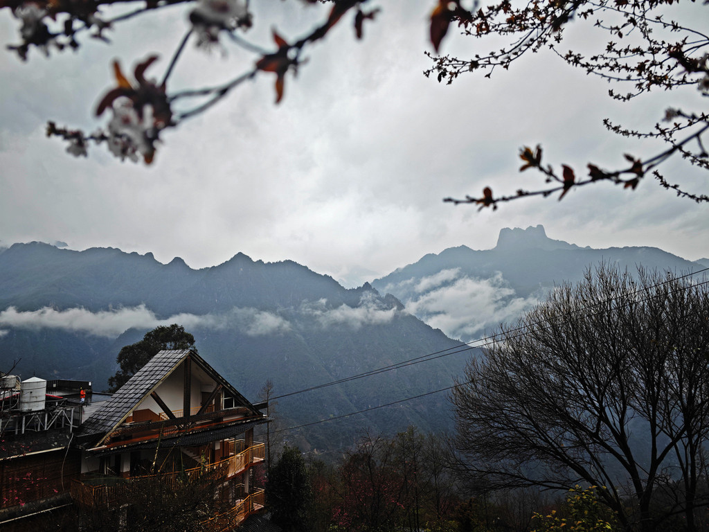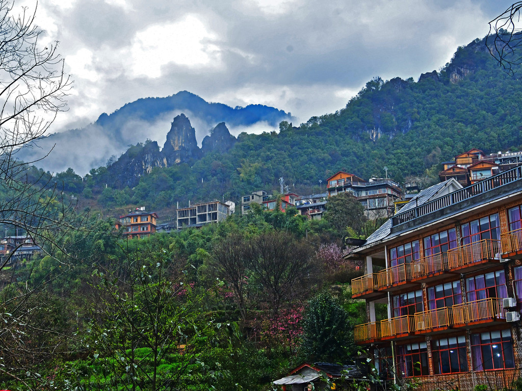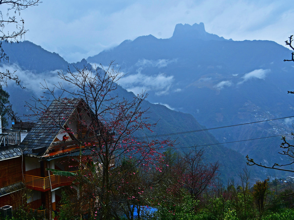 根据天气预报显示,昨天和今天都是雨天,明天会是晴天,出来玩了近10天,每天的行程我们都安排得满满当当的,既然雨天来了,那么我们就好好休息休息吧,在老姆登和知子罗,我们非常享受地体验了王维的《终南别业》:“行到水穷处,坐看云起时。”那种顺应自然、随遇而安、自得悠闲的人生态度。感觉非常放松、非常舒服,而且老天让我们见到了云雾飘渺的美景,要知道,这里可是人神共处的仙境哦。是呀,我们这几个耳顺之人,在今后的生活中都要有:“闲看雨落静待花开”的好心态。于是乎我们在老姆登的猴子树客栈住了两晚。