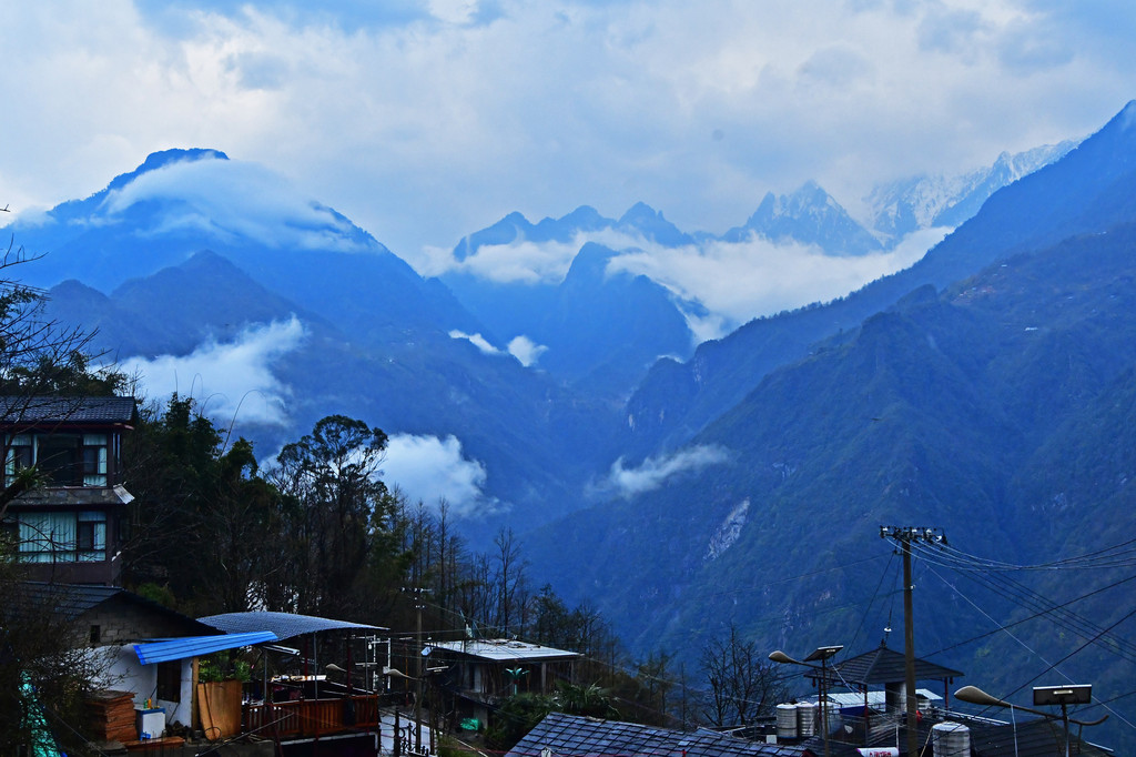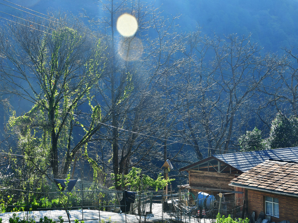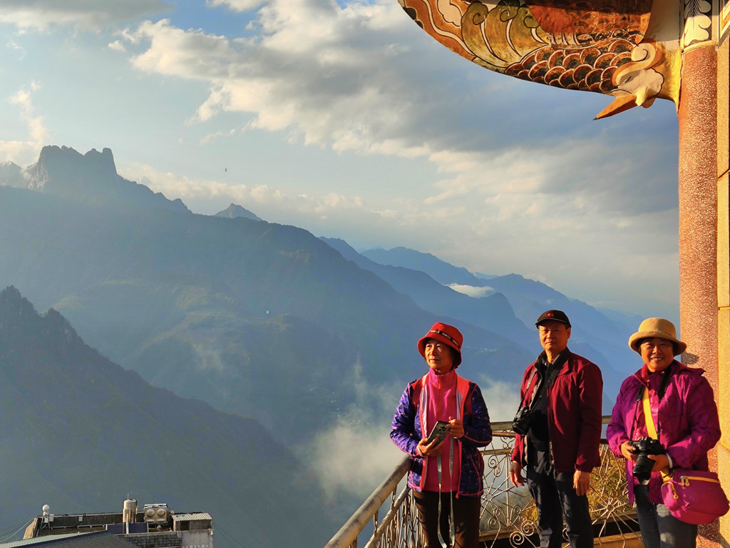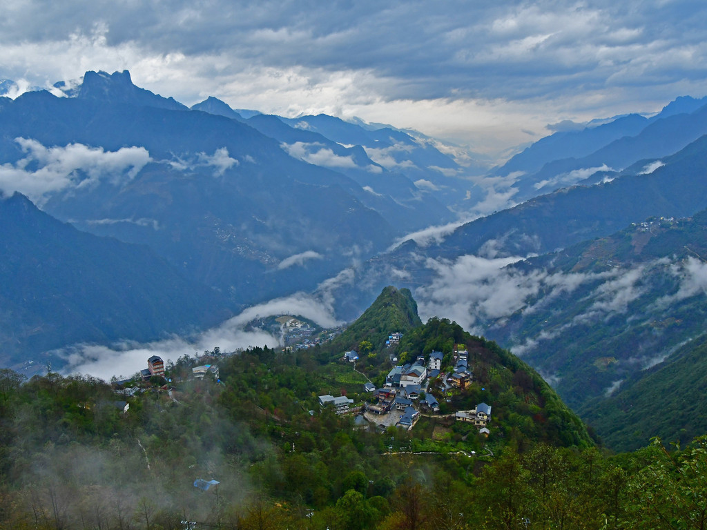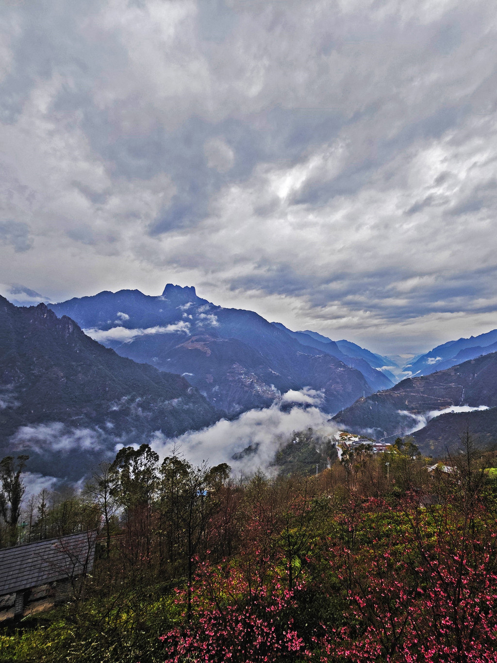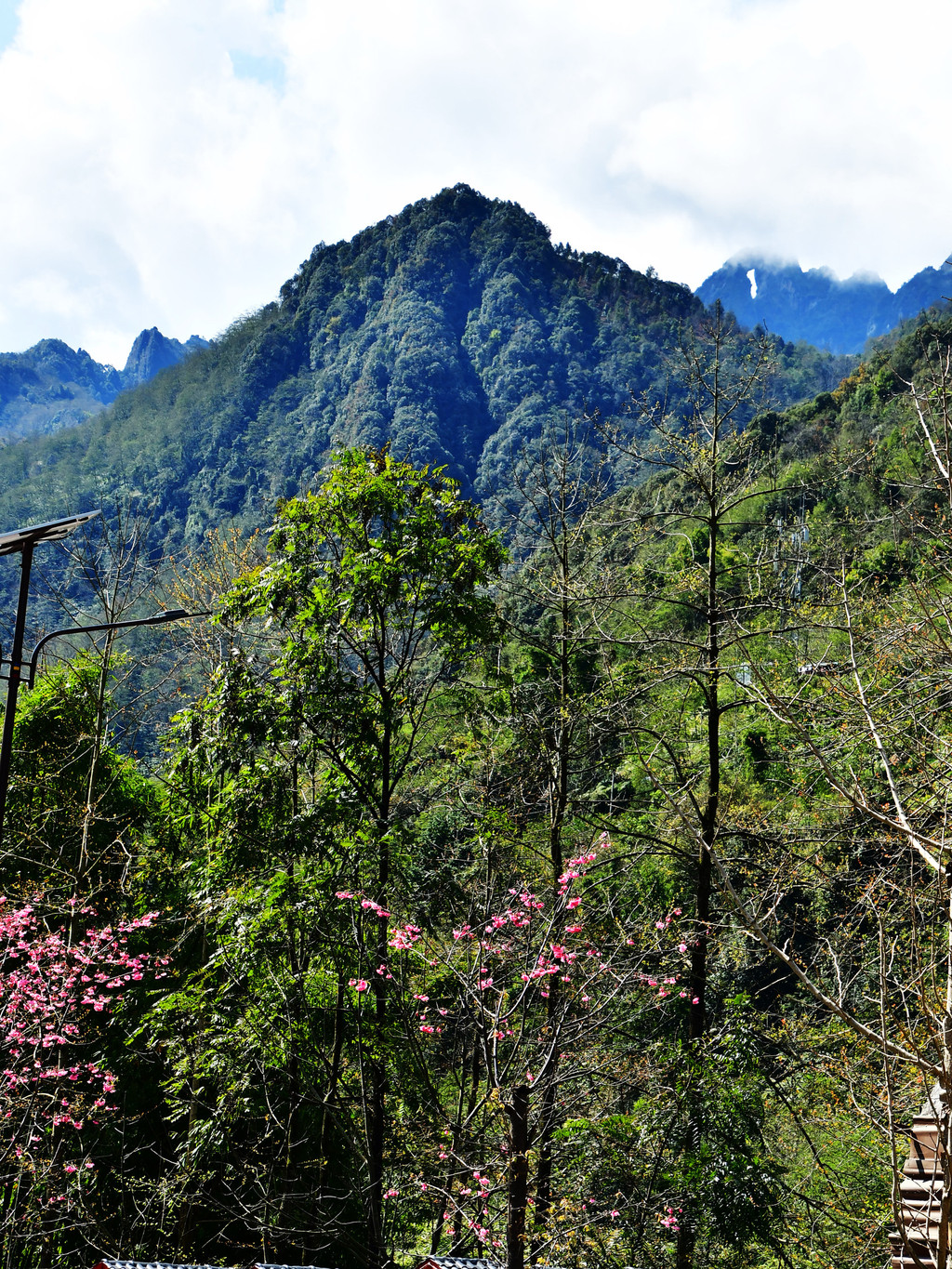 根据天气预报显示,昨天和今天都是雨天,明天会是晴天,出来玩了近10天,每天的行程我们都安排得满满当当的,既然雨天来了,那么我们就好好休息休息吧,在老姆登和知子罗,我们非常享受地体验了王维的《终南别业》:“行到水穷处,坐看云起时。”那种顺应自然、随遇而安、自得悠闲的人生态度。感觉非常放松、非常舒服,而且老天让我们见到了云雾飘渺的美景,要知道,这里可是人神共处的仙境哦。是呀,我们这几个耳顺之人,在今后的生活中都要有:“闲看雨落静待花开”的好心态。于是乎我们在老姆登的猴子树客栈住了两晚。