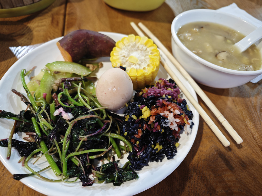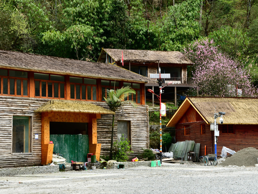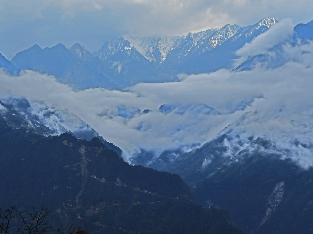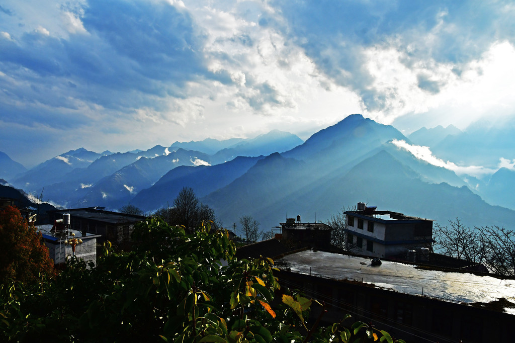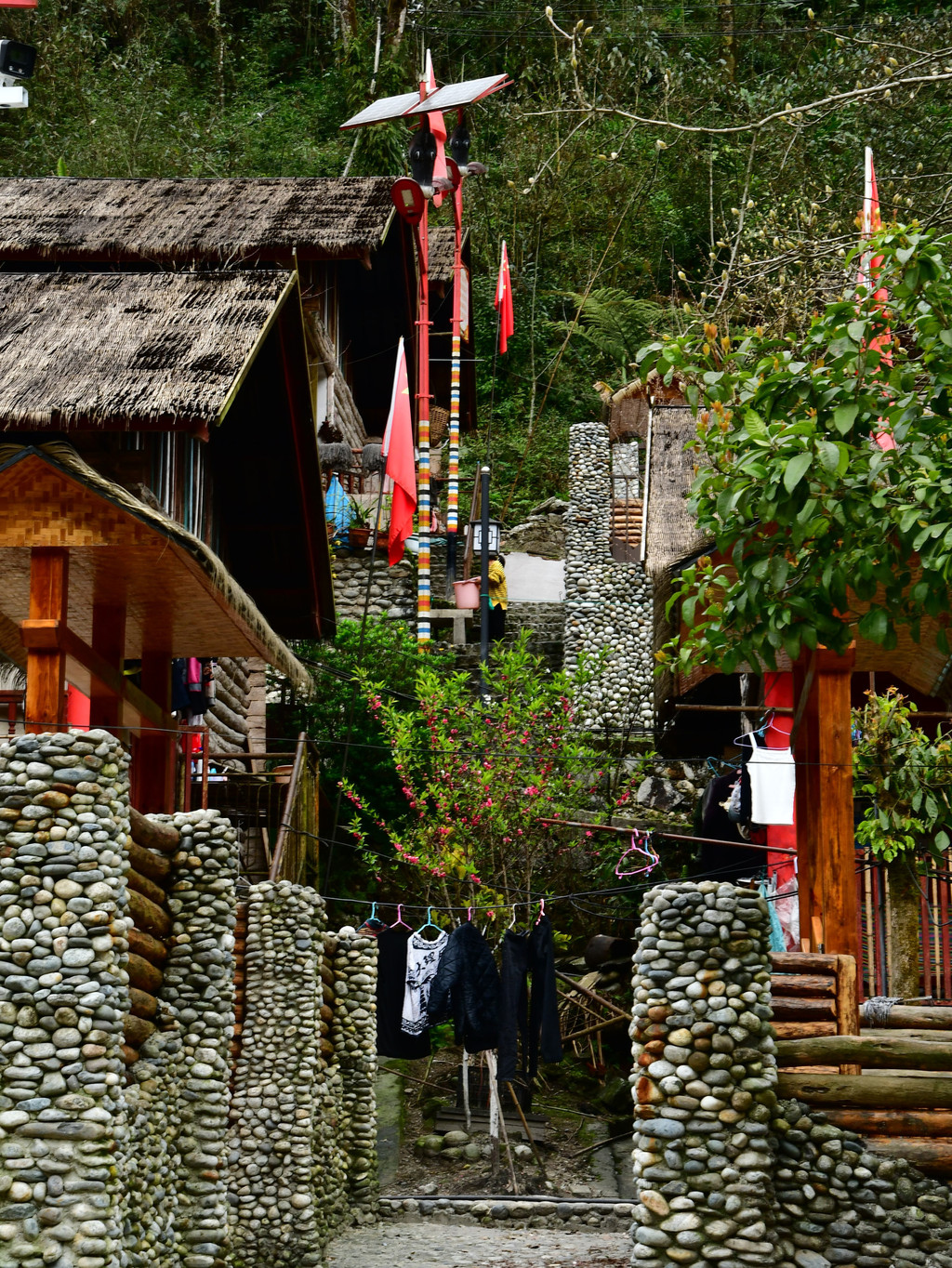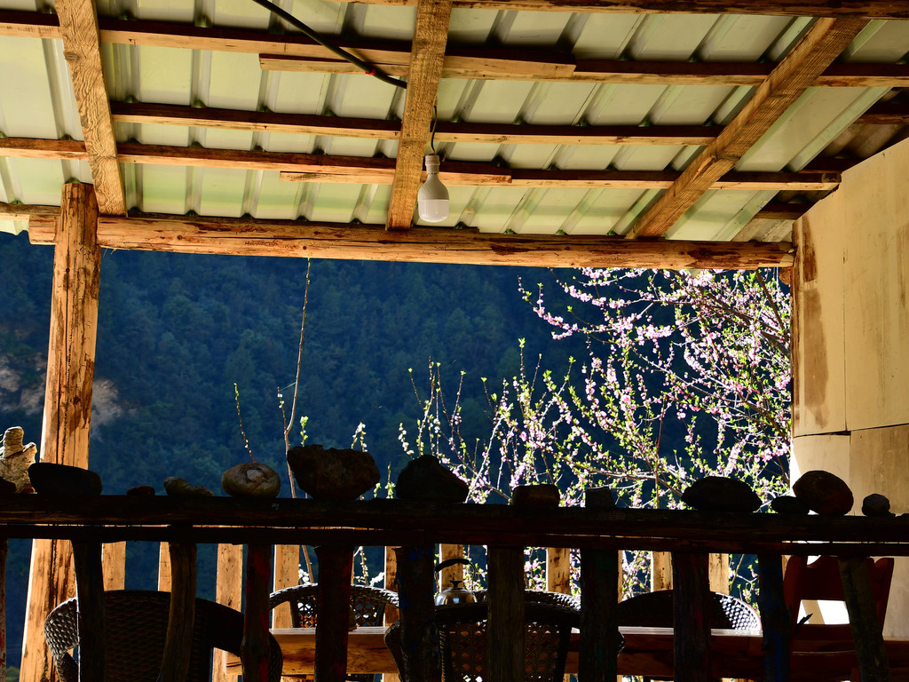 根据天气预报显示,昨天和今天都是雨天,明天会是晴天,出来玩了近10天,每天的行程我们都安排得满满当当的,既然雨天来了,那么我们就好好休息休息吧,在老姆登和知子罗,我们非常享受地体验了王维的《终南别业》:“行到水穷处,坐看云起时。”那种顺应自然、随遇而安、自得悠闲的人生态度。感觉非常放松、非常舒服,而且老天让我们见到了云雾飘渺的美景,要知道,这里可是人神共处的仙境哦。是呀,我们这几个耳顺之人,在今后的生活中都要有:“闲看雨落静待花开”的好心态。于是乎我们在老姆登的猴子树客栈住了两晚。