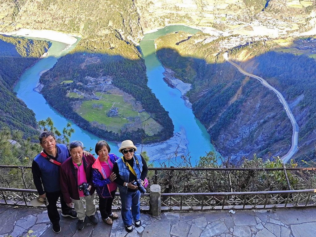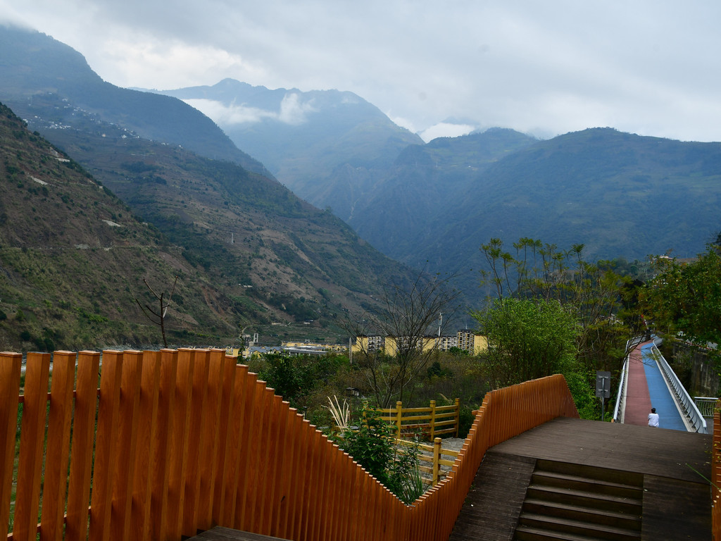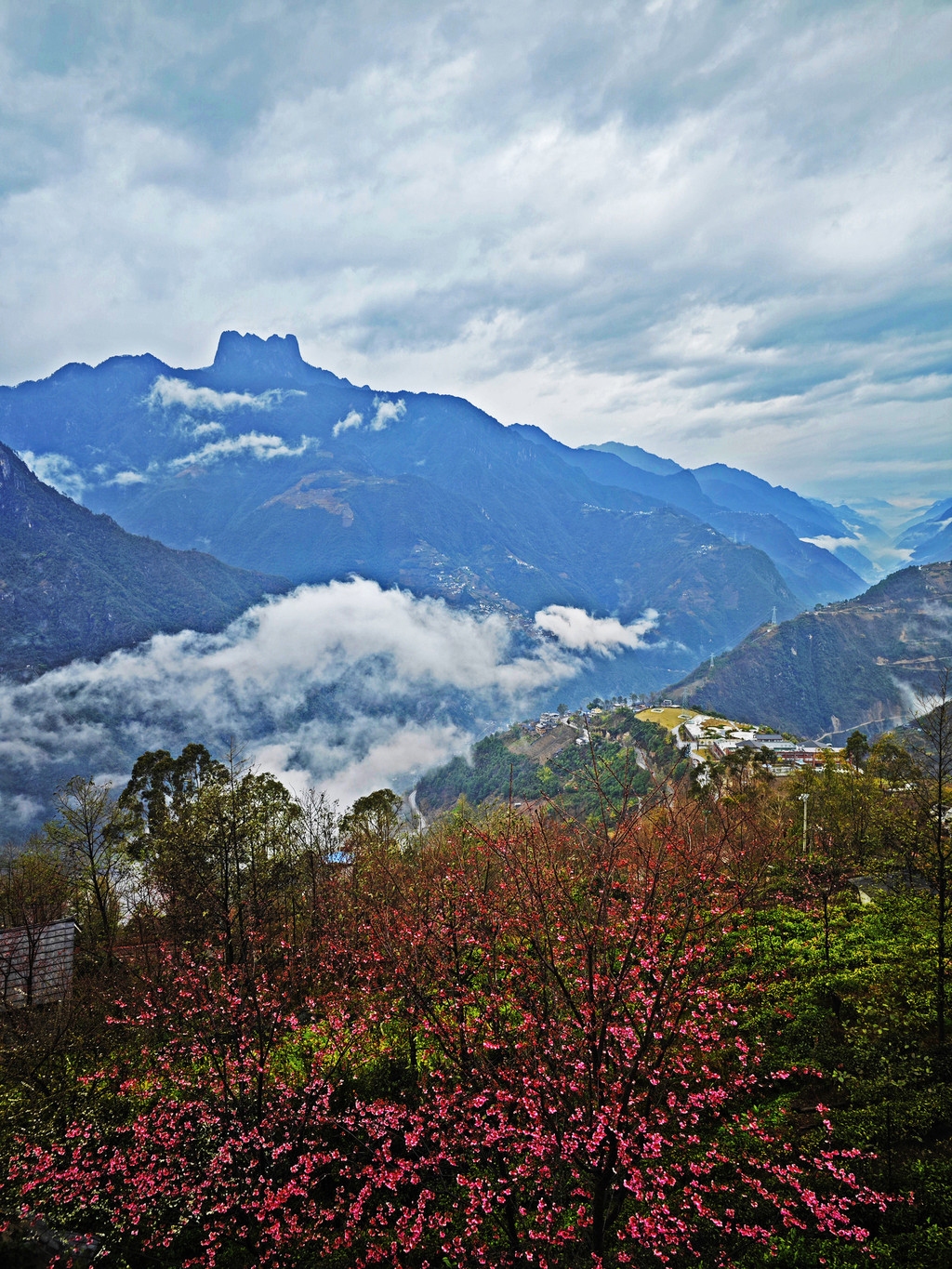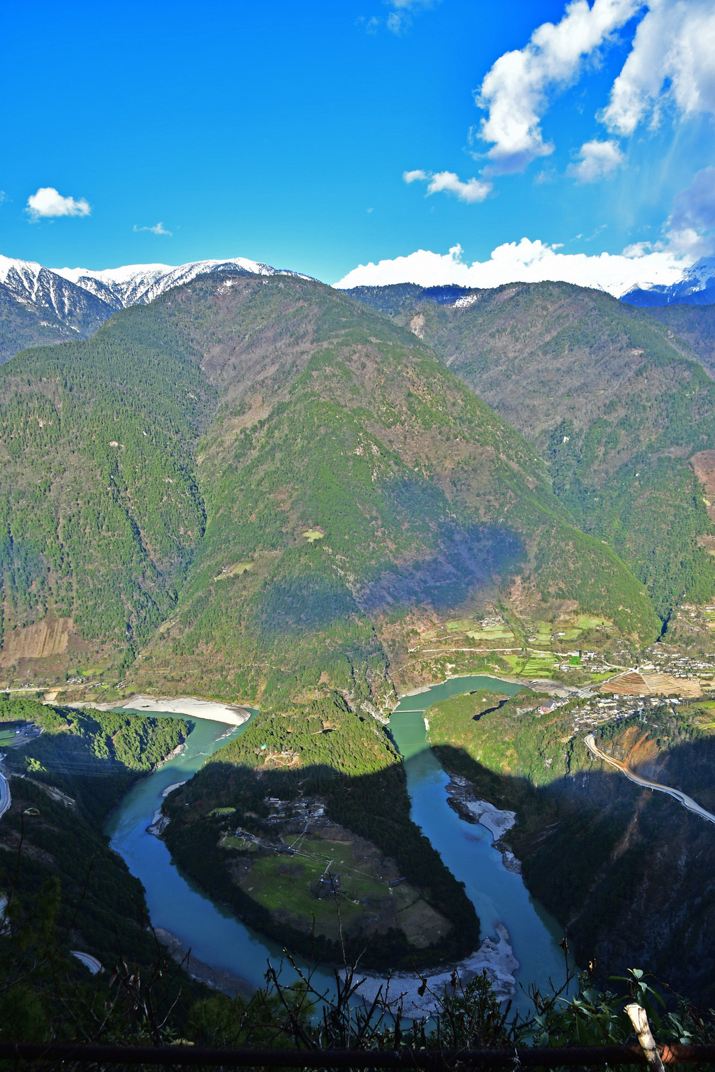 丙中洛观景台是贡当神山上位置最低的一个观景台,可以俯瞰怒江及其周边的壮丽景色。这里不仅是观赏怒江第一湾的最佳位置,还能看到连绵不绝的山脉和云雾缭绕的丙中洛坝子,仿佛置身仙境。其实:在贡当神山上一共有三个观景台,只是处在贡当神山不同的高度而与。在丙中洛观景台主要是欣赏俯瞰桃花岛的景色,第二天下午我们还开车上岛上游玩了,道路非常崎岖,对内地的司机来说,那是一次严峻的路考,桃花岛是扎那桶村的俗称,村子很小、平地也不多,我们憧憬的桃花岛是到处盛开着粉红色桃花美丽村庄,可千辛万苦驱车来到岛上,有点小失望,岛上只有象征性的几棵桃花不情不愿地开着几朵小花,所以,桃花岛只能远朓不需近访。