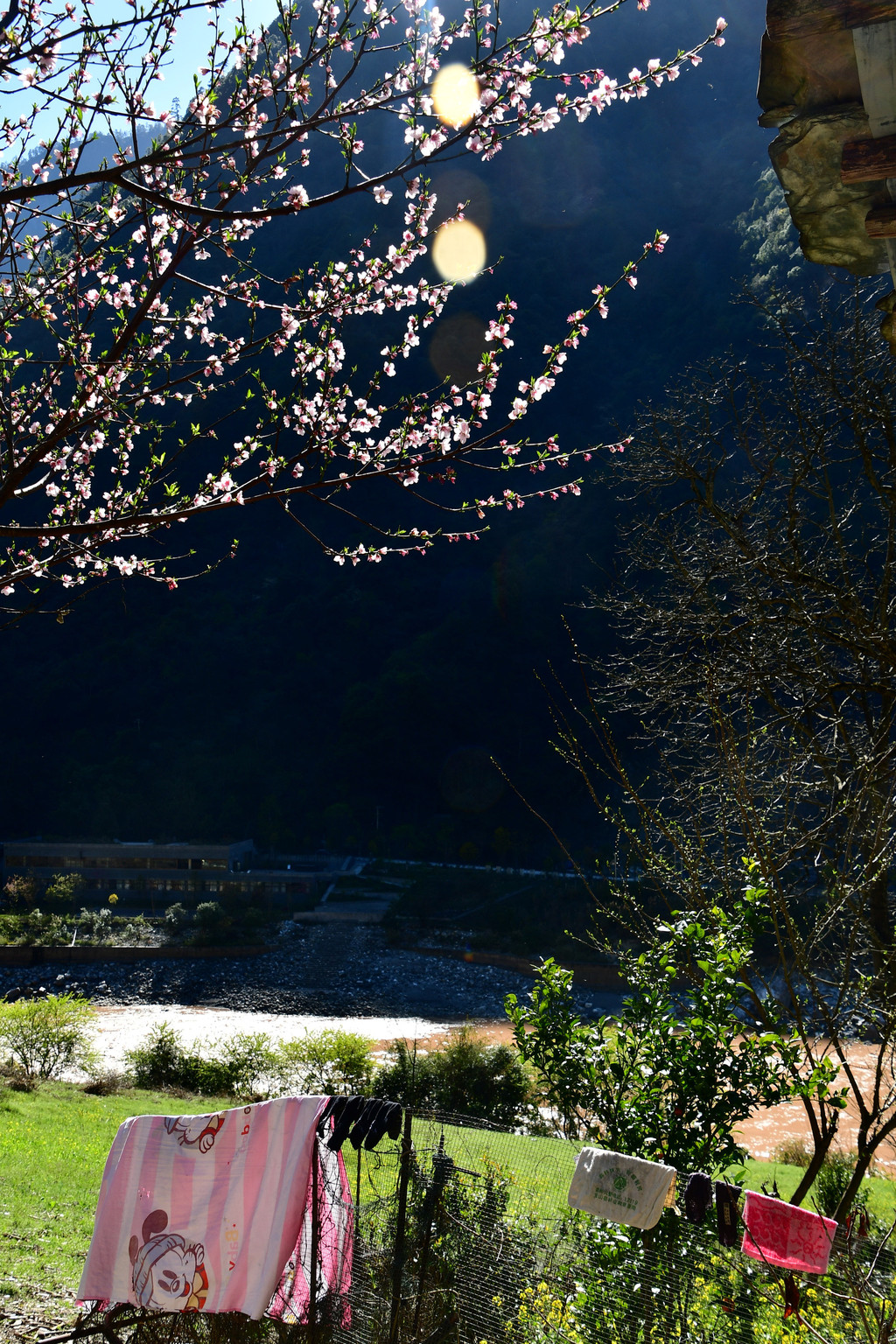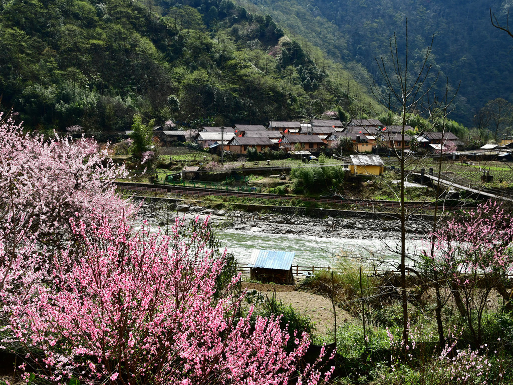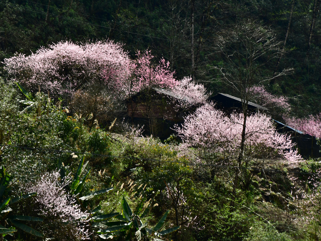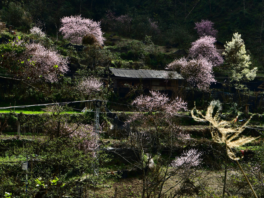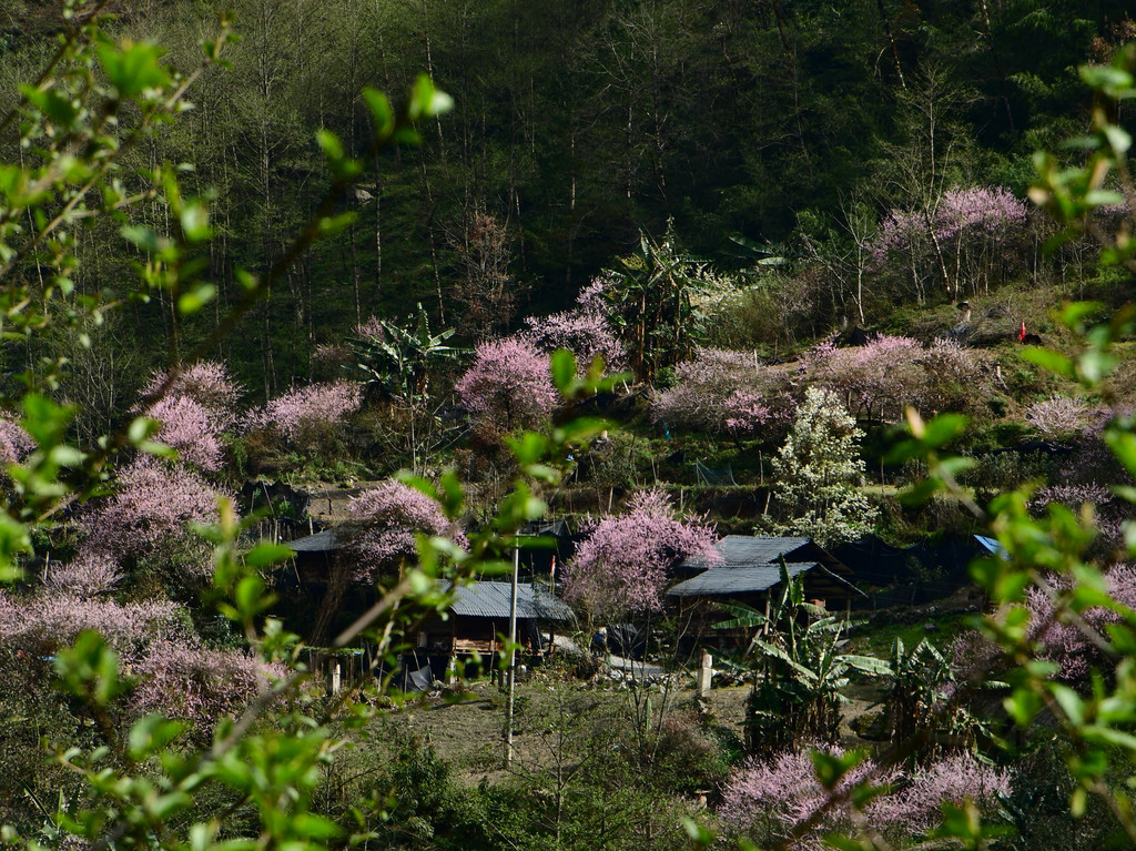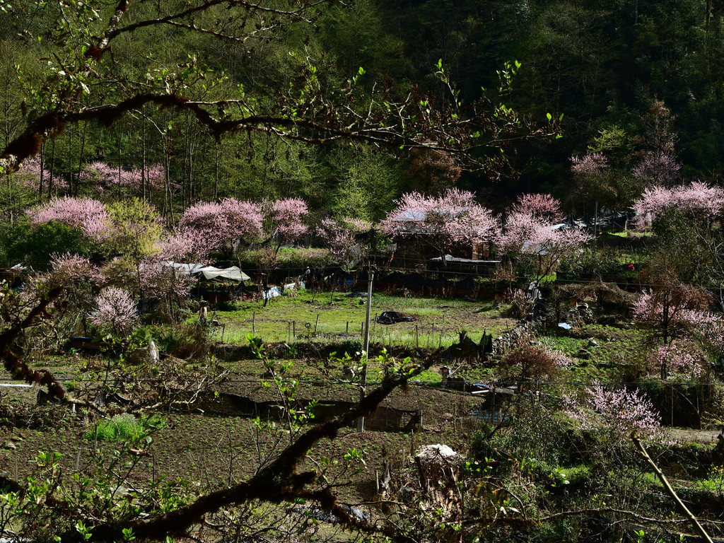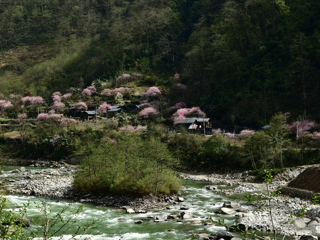 离开普卡旺村后,我们的目标是到龙元村寻访纹面女的,一路上,远山如黛、村庄、河流装点在丛林中、到处都是绿油油的、桃红柳绿、好一派田园风光,我们的车开得很慢,一路美景接应不暇,前面的村庄中一棵棵粉红色的桃花在阳光的照射下,映红了整个小山村,太吸睛了,我们干脆在路边停车,静静地、远远地欣赏着这幅室外桃源的美好画卷。好享受眼前这份粉红色的浪漫啊!后来经了解,这个村子叫“白来组村”,我们可没有白来哟,相机、手机收获满满,不信?上片!