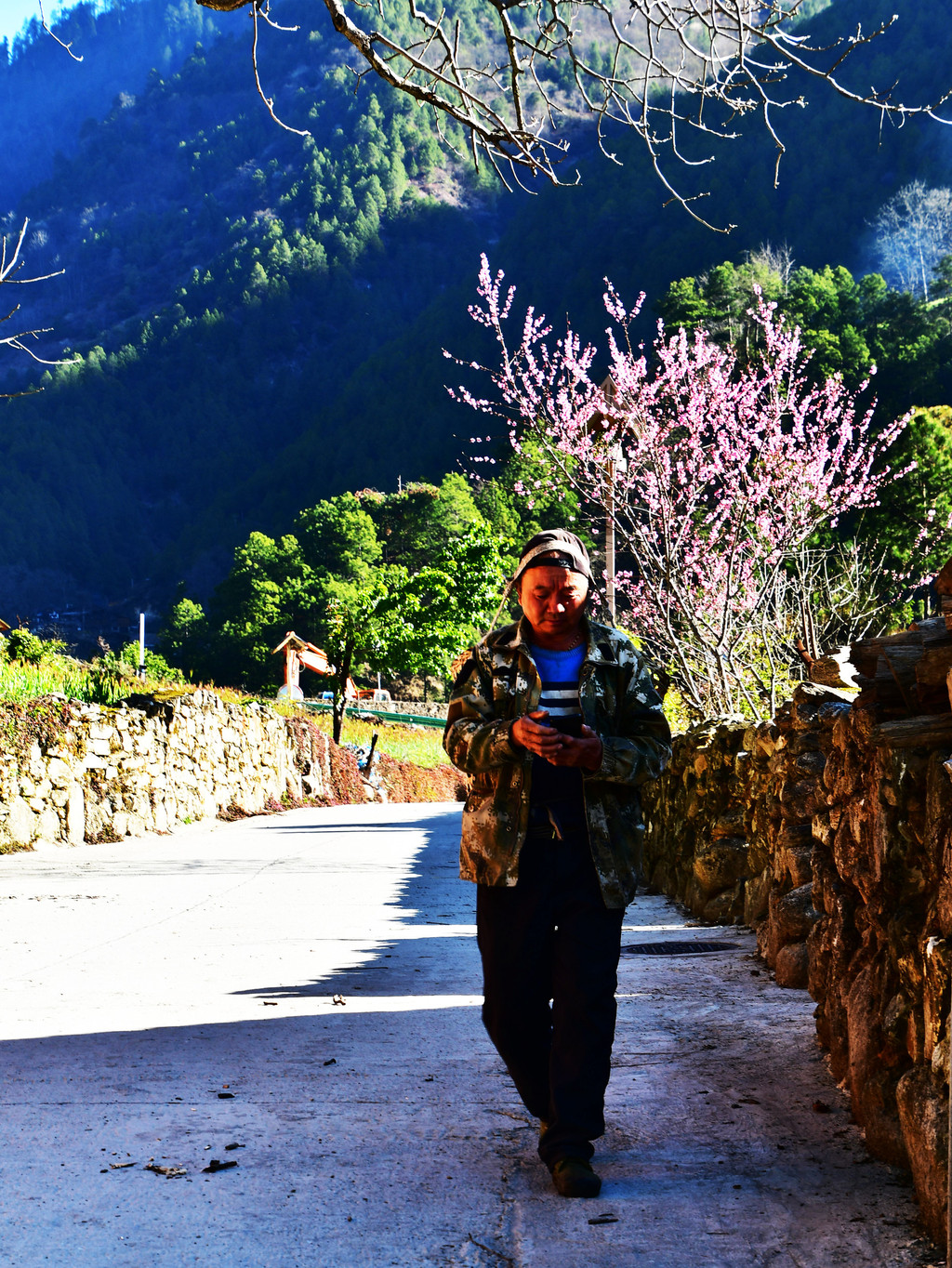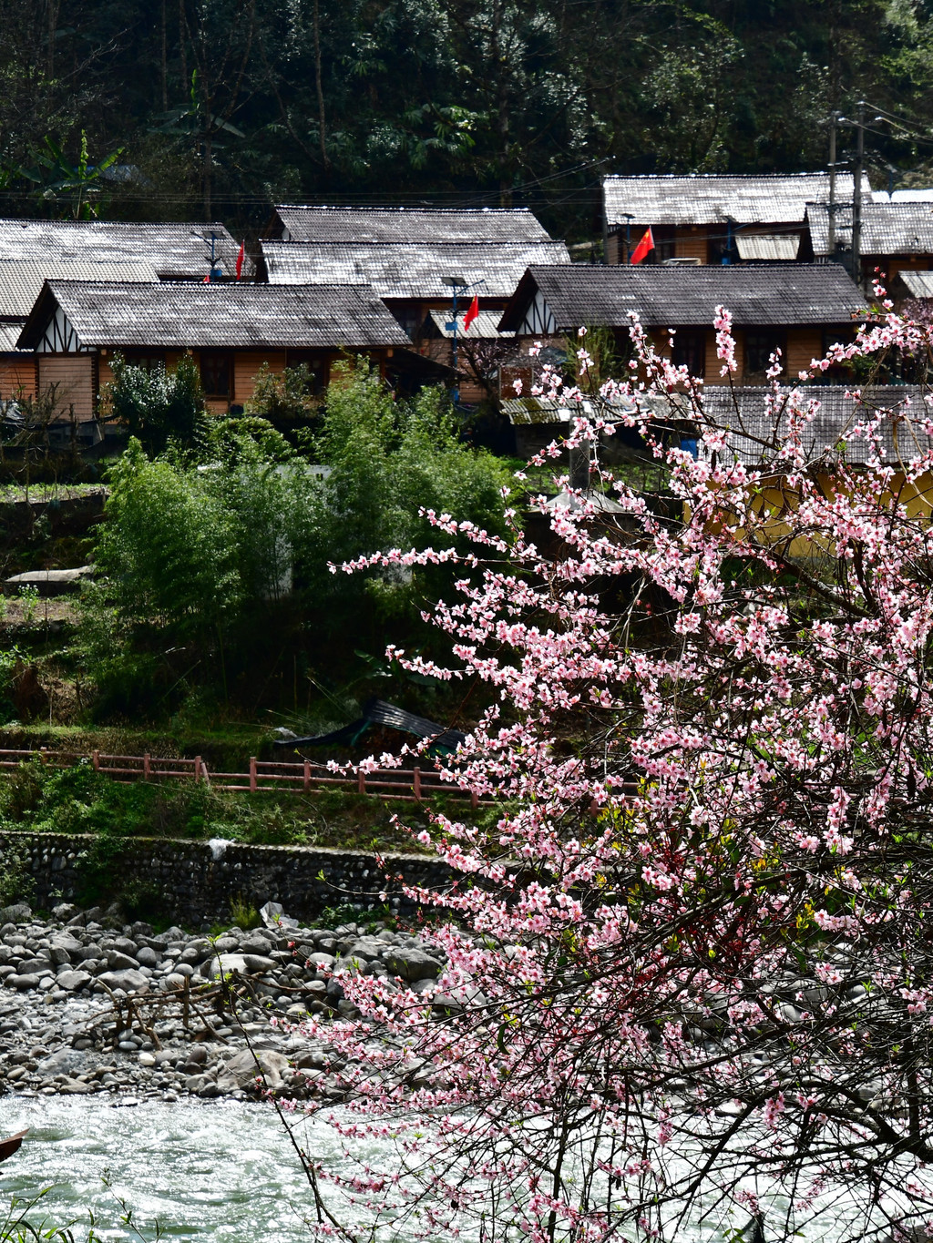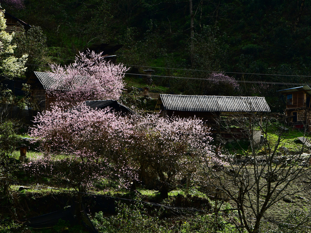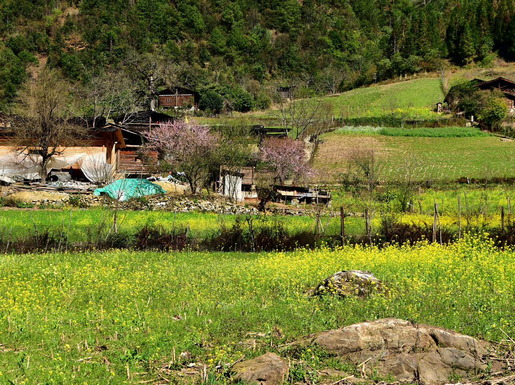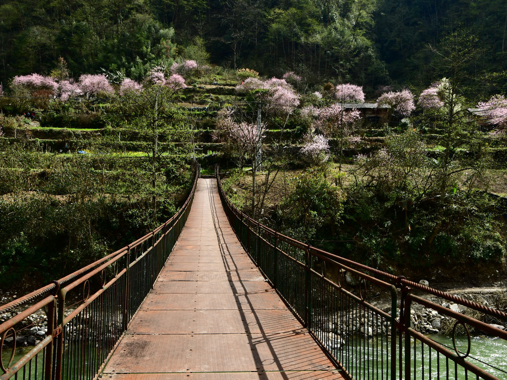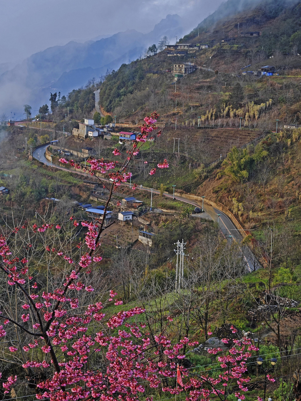 离开普卡旺村后,我们的目标是到龙元村寻访纹面女的,一路上,远山如黛、村庄、河流装点在丛林中、到处都是绿油油的、桃红柳绿、好一派田园风光,我们的车开得很慢,一路美景接应不暇,前面的村庄中一棵棵粉红色的桃花在阳光的照射下,映红了整个小山村,太吸睛了,我们干脆在路边停车,静静地、远远地欣赏着这幅室外桃源的美好画卷。好享受眼前这份粉红色的浪漫啊!后来经了解,这个村子叫“白来组村”,我们可没有白来哟,相机、手机收获满满,不信?上片!