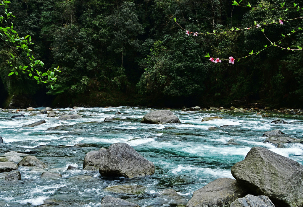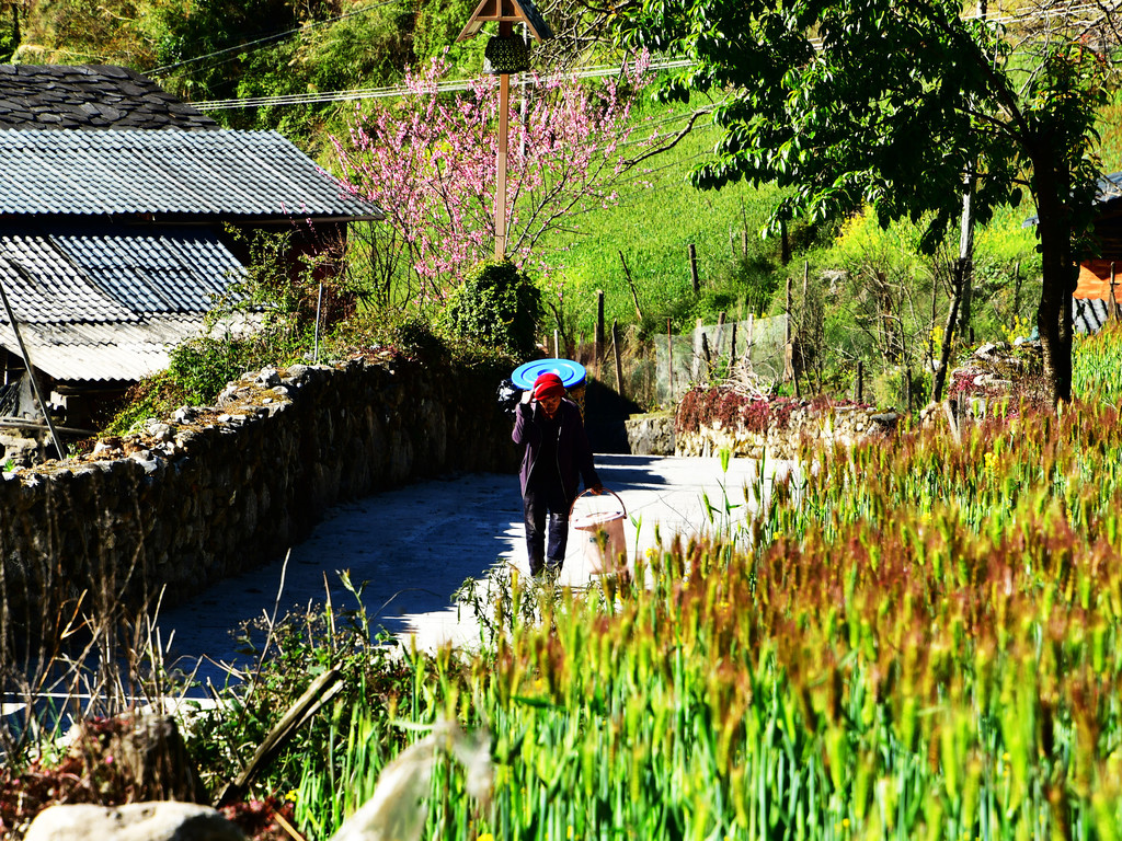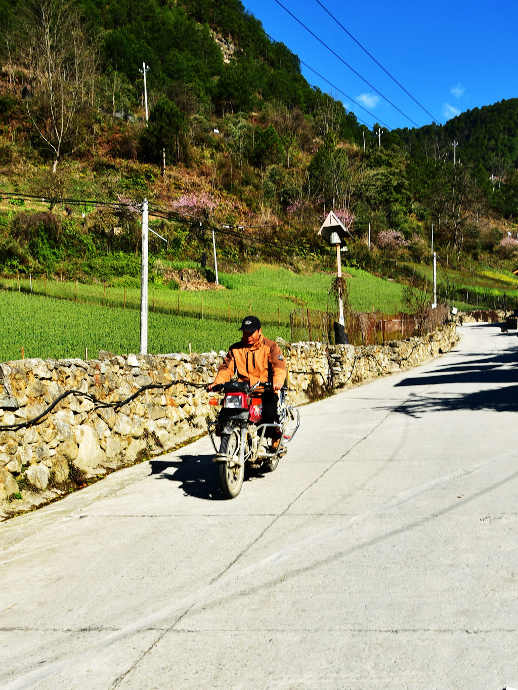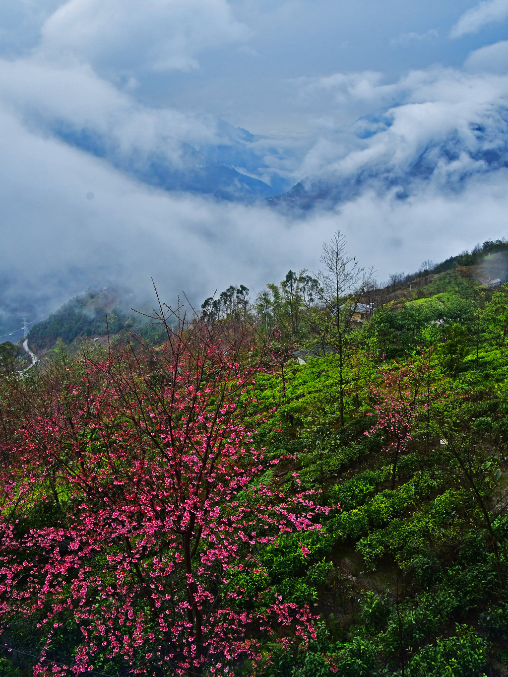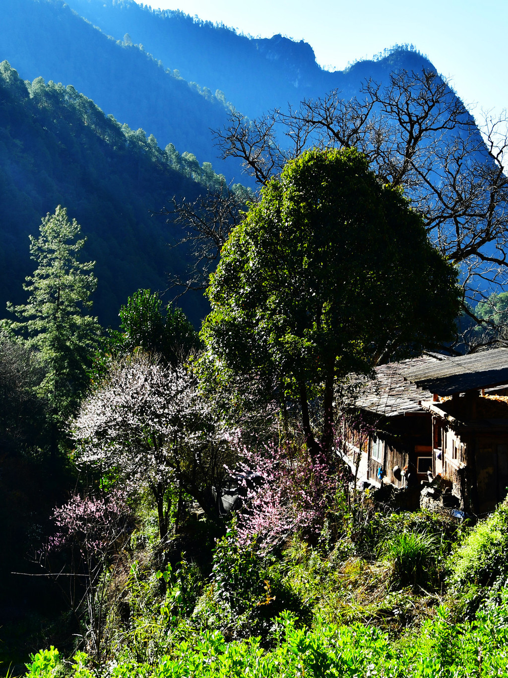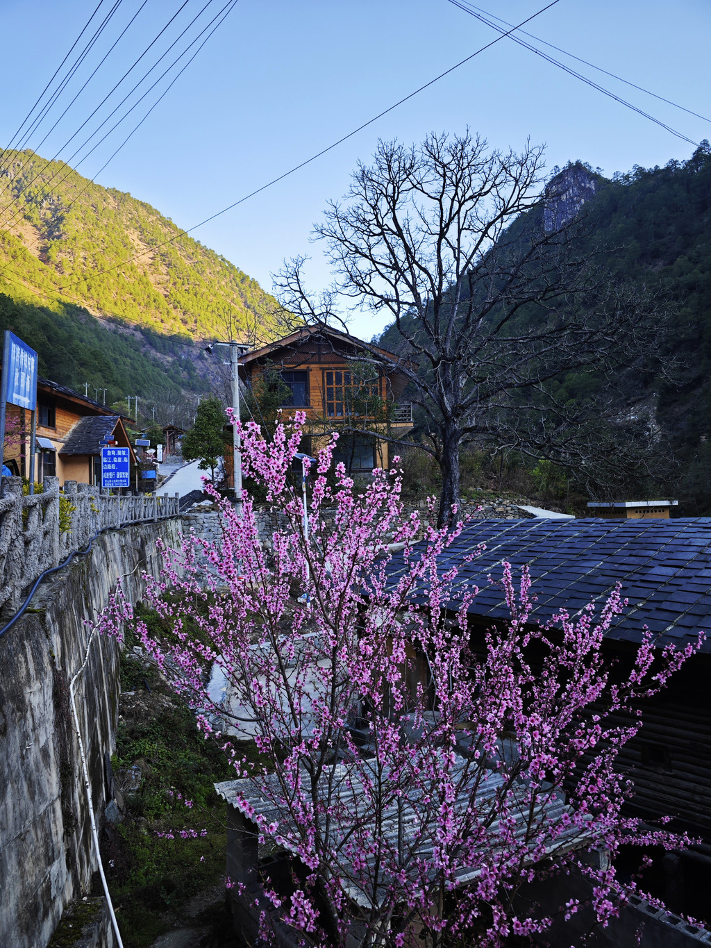 离开普卡旺村后,我们的目标是到龙元村寻访纹面女的,一路上,远山如黛、村庄、河流装点在丛林中、到处都是绿油油的、桃红柳绿、好一派田园风光,我们的车开得很慢,一路美景接应不暇,前面的村庄中一棵棵粉红色的桃花在阳光的照射下,映红了整个小山村,太吸睛了,我们干脆在路边停车,静静地、远远地欣赏着这幅室外桃源的美好画卷。好享受眼前这份粉红色的浪漫啊!后来经了解,这个村子叫“白来组村”,我们可没有白来哟,相机、手机收获满满,不信?上片!