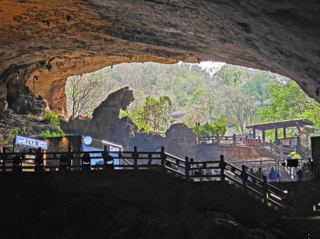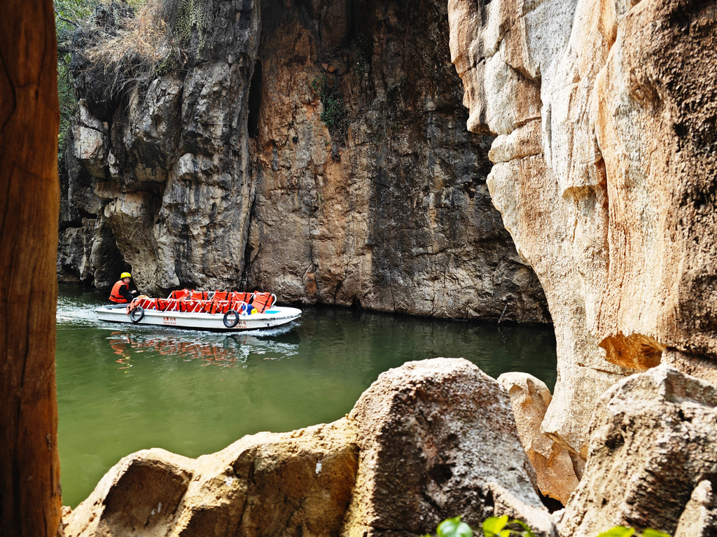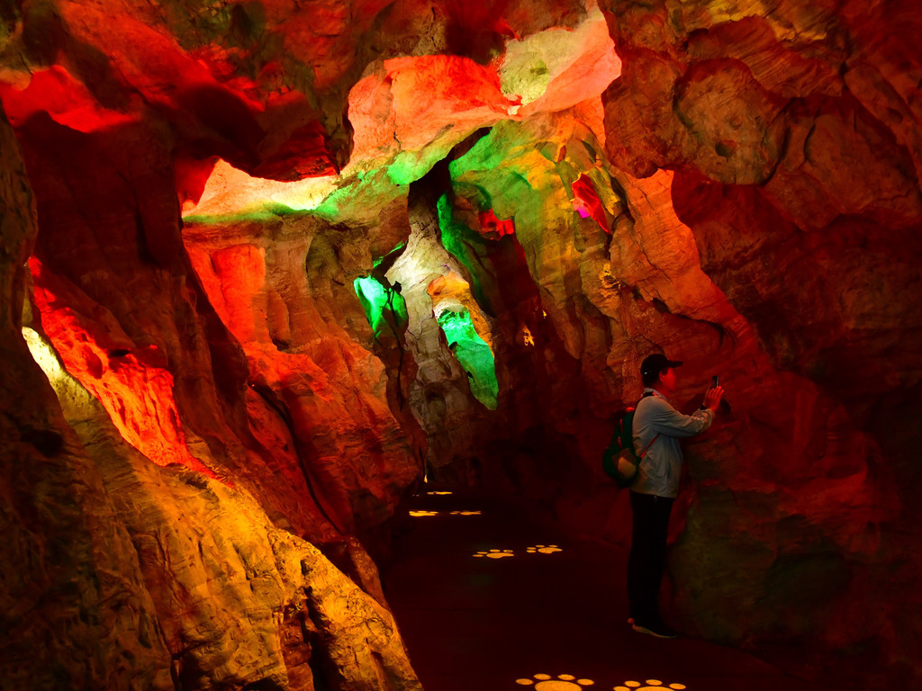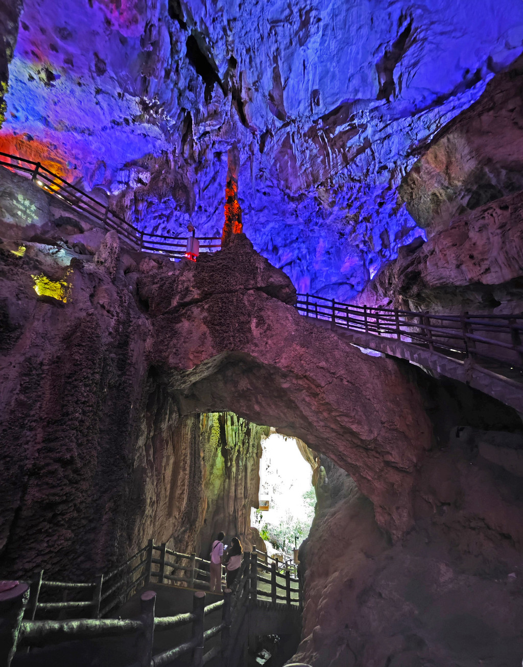 我们从楚雄到达宜良九乡,首先在九乡吃午饭再进入宜良九乡风景区。宜良九乡风景区位于云南省昆明市宜良县九乡彝族回族乡,是一个以溶洞群落为主要特色的4A级旅游景区。九乡风景区以其国内规模最大的溶洞群落闻名,上百座溶洞纵横交错,形成了如荫翠峡、雄狮厅、雌雄双瀑、神田等绝景,被誉为“溶洞博物馆”。按照导航下午两点我们到达景区大门口,首先是进入360°球幕影院,体验置身于全景包围的视觉空间中,欣赏地底洞穴和浩瀚宇宙的景象。接着是:索道、麦田码头坐游船到达叠虹桥码头,二次坐船游览荫翠峡才进入溶洞,走出溶洞后坐座椅缆车到达旧的景区大门口、摆渡车回到游客中心。套票:199元/人。
