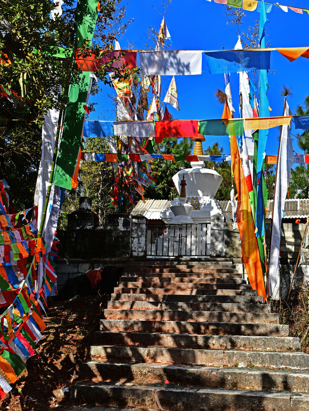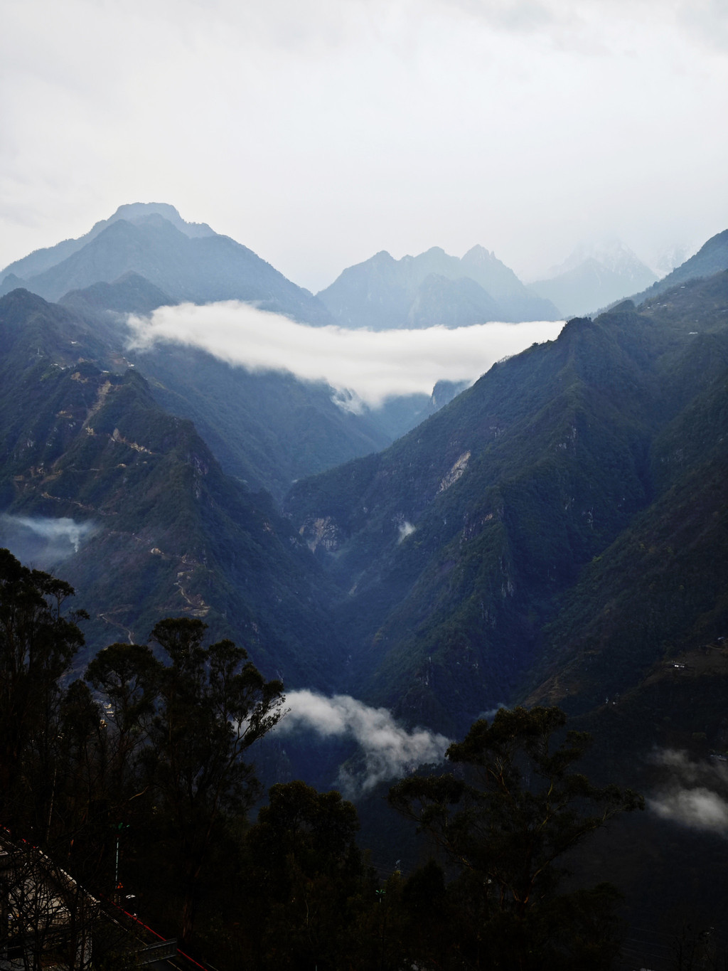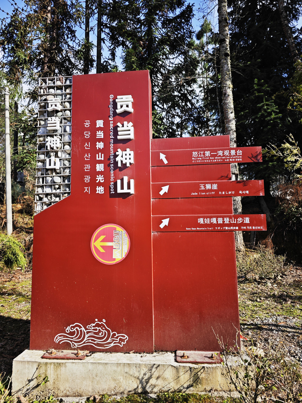 为了俯瞰怒江第一湾的全貌,我们还前往了位于贡当神山上三个观景台中最高的观景台。沿着路上山,会经过一个白塔,来到半山腰到达一个停车场后停车,穿过一个养鸡场,根据路标就可以到达观景台。这里的视野非常棒,可以看到怒江第一湾的全貌、蜿蜒的G219公路、以及山间缭绕的云雾。站在这里,能感受到大自然的壮丽与神秘。