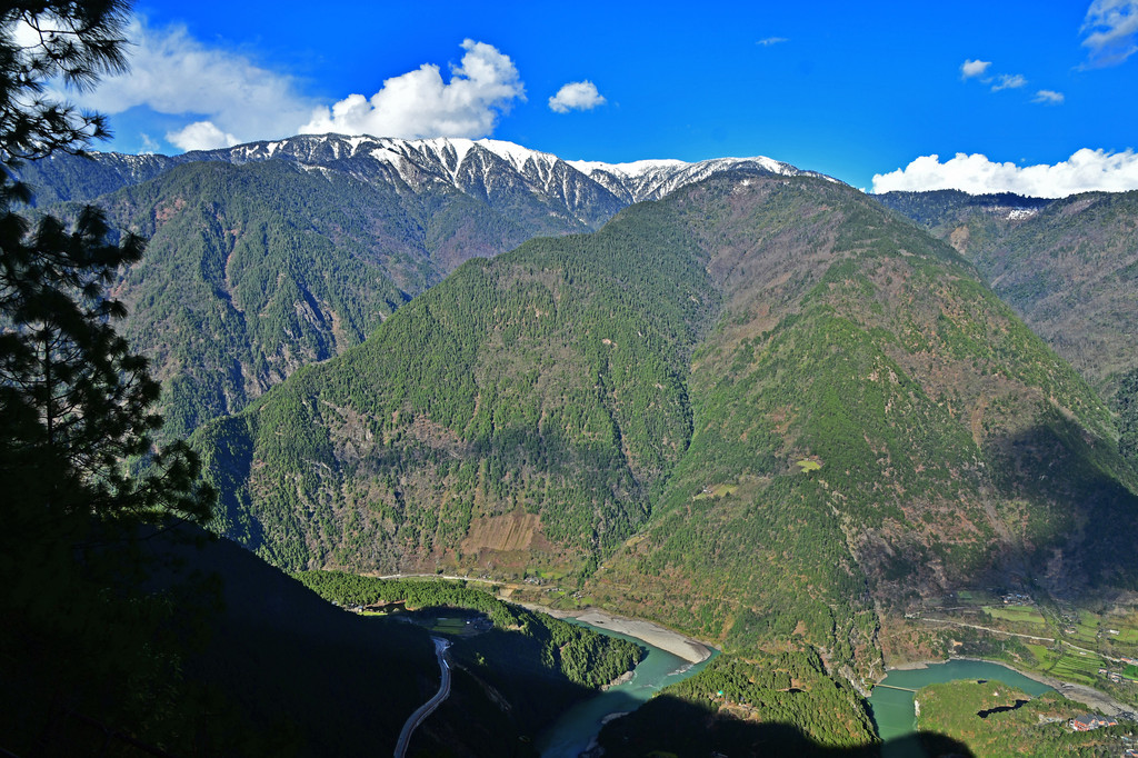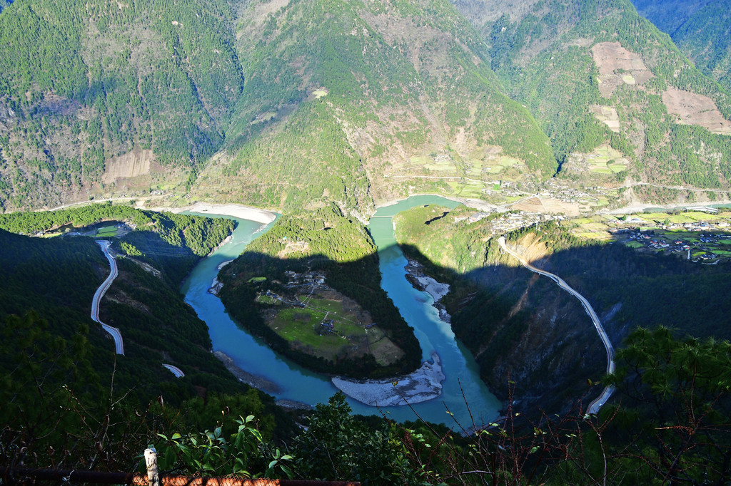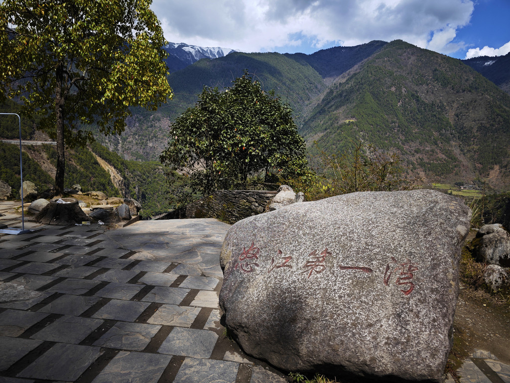 怒江第一湾观景台位于云南省怒江傈僳族自治州贡山独龙族怒族自治县丙中洛乡日丹村附近,在G219公路边,是怒江流经该地区形成的一个半圆形大湾,称为怒江第一湾。这里地势险峻,江面海拔1710余米,湾上怒江台地平坦开阔,高出怒江500米,构成三面环水的半岛状小平原。