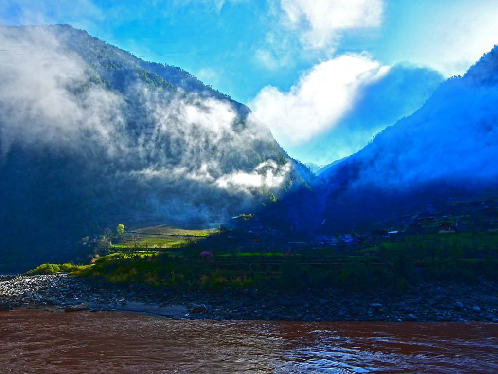 这个季节一个好天气对于在独龙江边生活或旅游的人来说,是可遇不可求的,如果遇到恶劣天气,如暴雨、雪崩等都会封路,那么独龙江这边就会与外面断绝交通往来,所以,我们今天一定要抓住这个好天气,好好领略一下这边独特的风光。早餐之后打卡独龙江普卡旺村、白来桃花村、探访龙元纹面女,下午穿越高黎贡山,夜宿福贡县城。