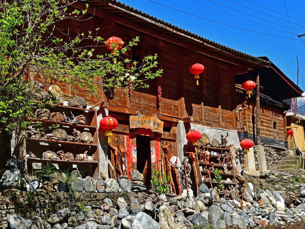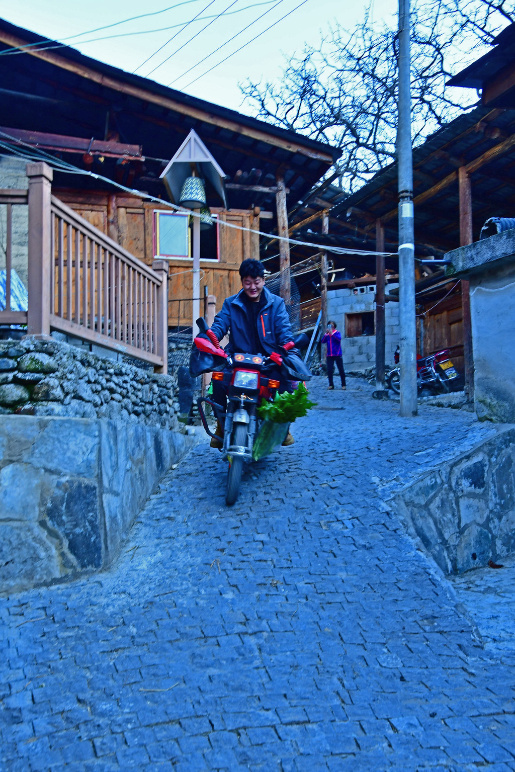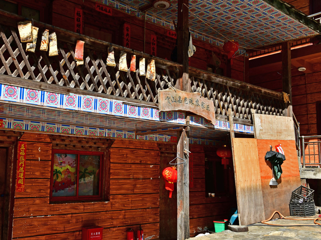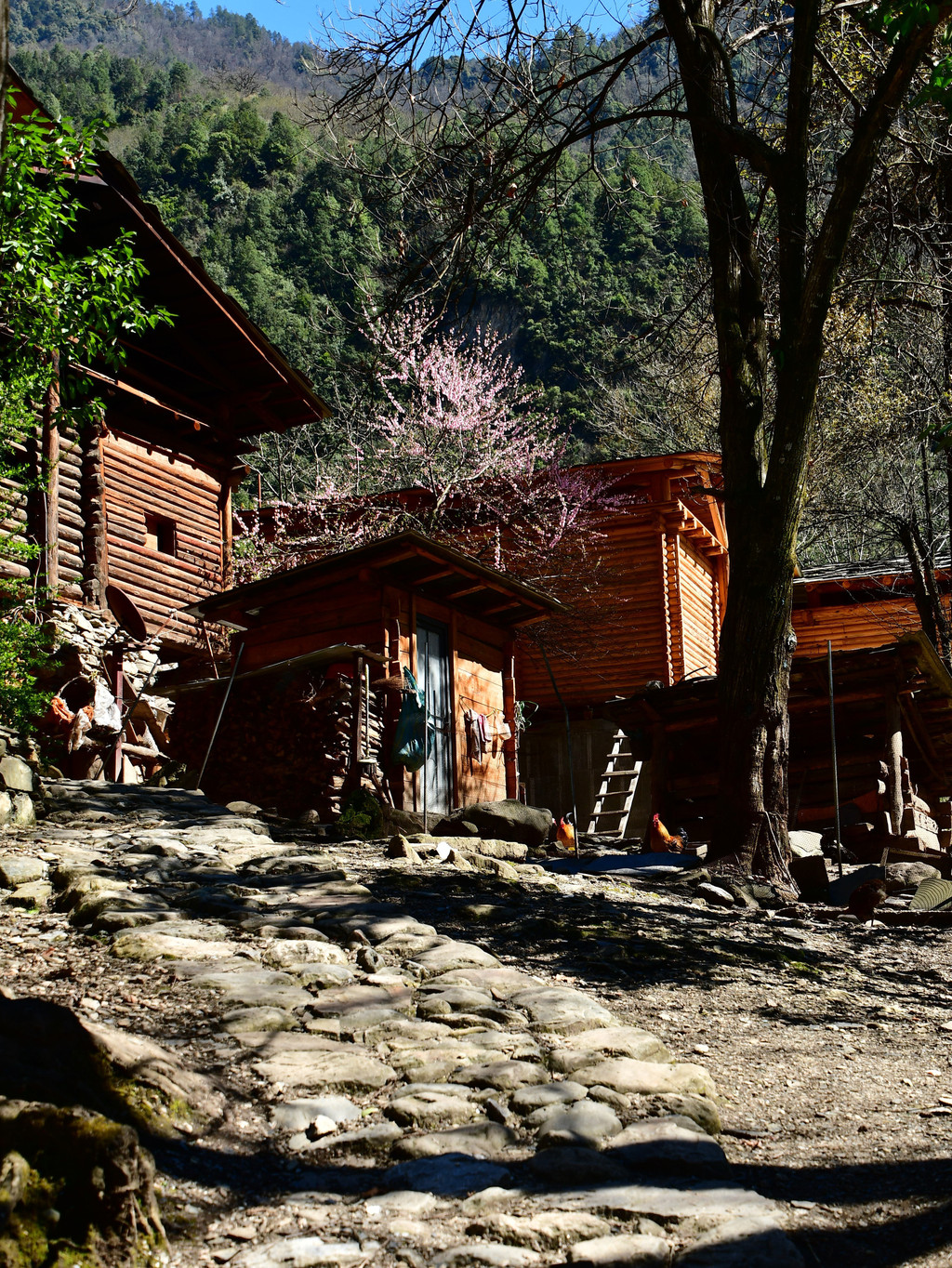 当地的房屋是典型的怒族格调,就地取材,全木头房子,房顶不是瓦片,而是用石板盖起来的。房子一般分两层,下层喂养牲畜,上层住人。