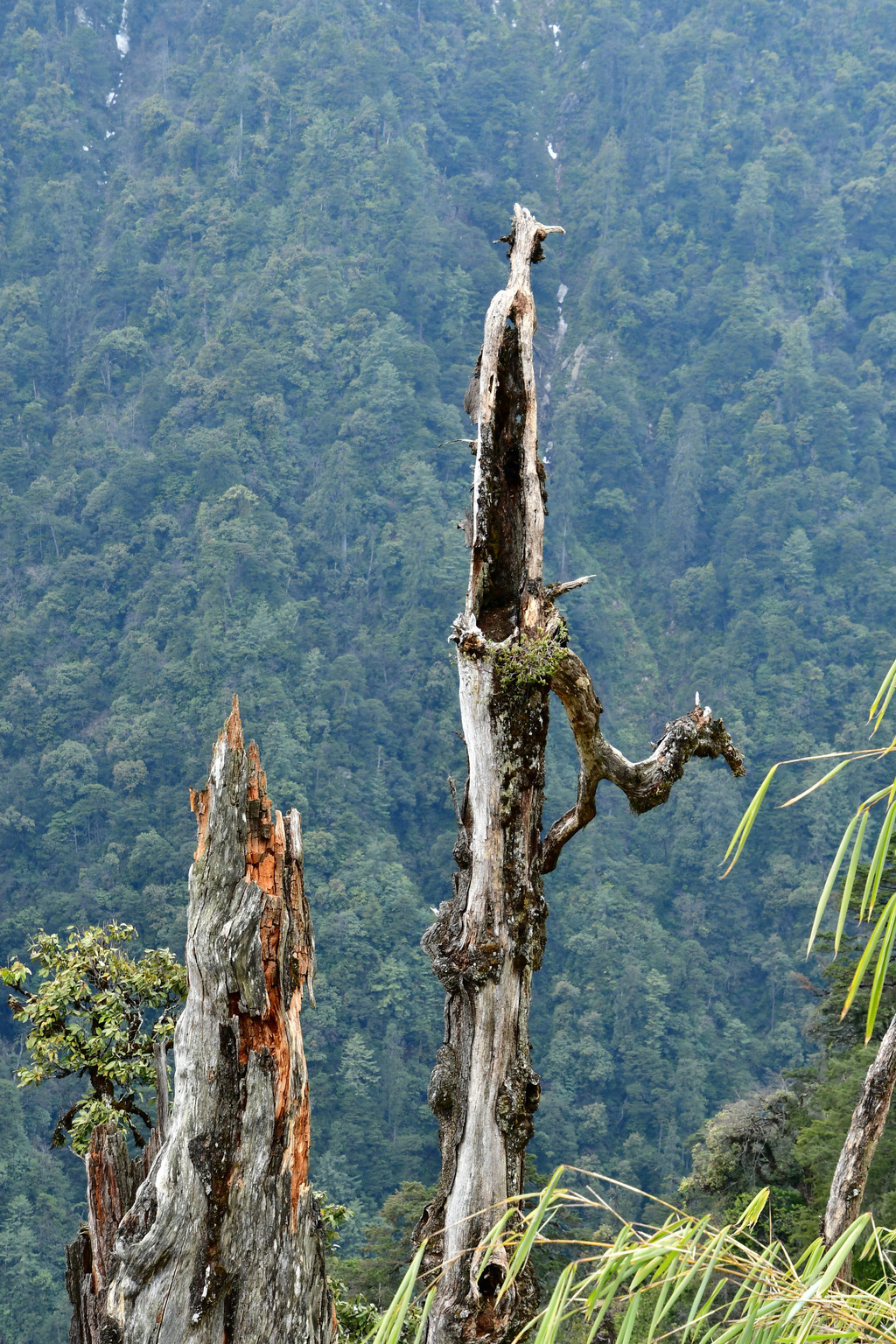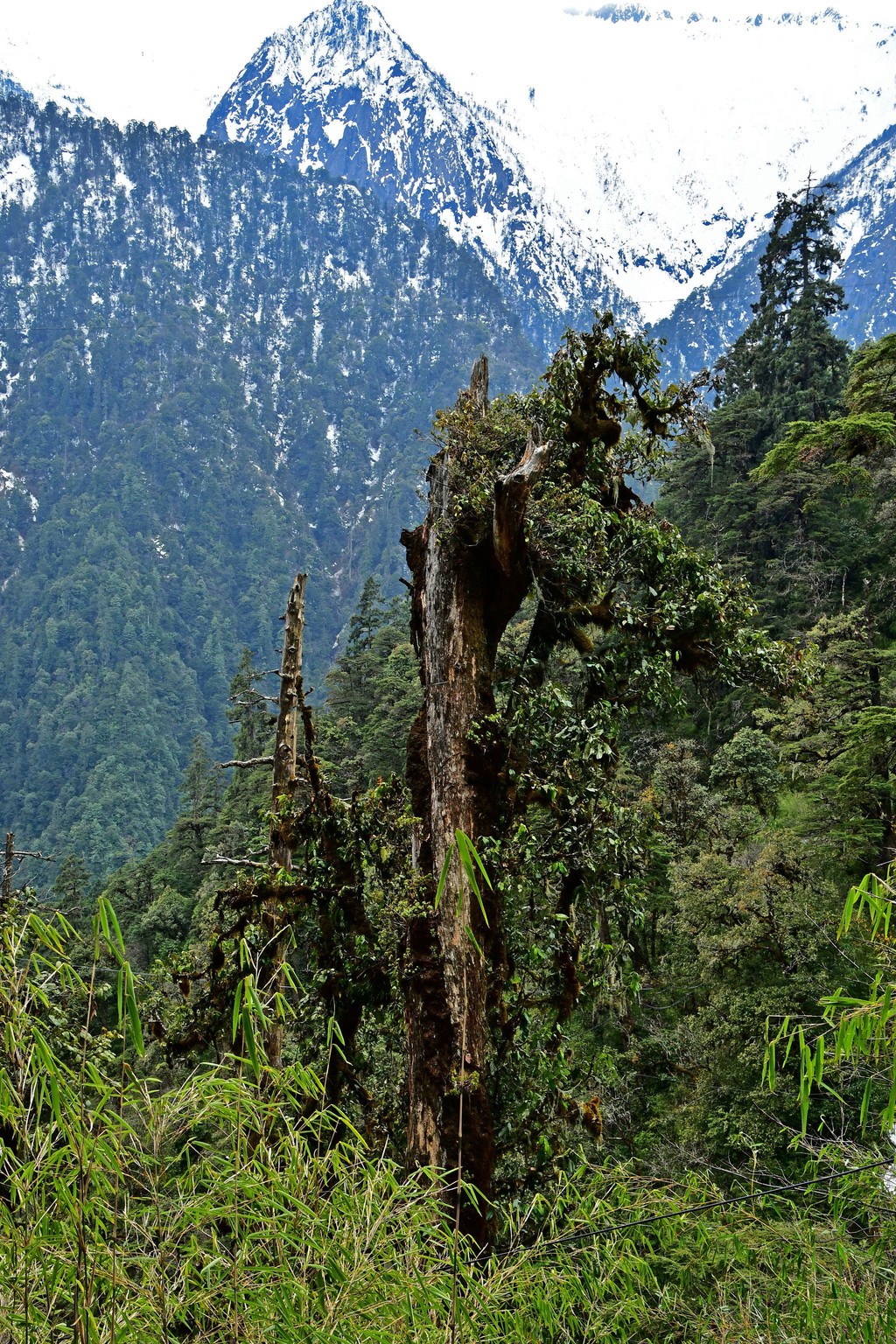 独龙江公路旁的神树桩观景台:山间的云犹如一匹匹腾空的白马,驮着行人的思绪,往东到独龙江,往西到怒江,而眼前直指天空的老树便是拴马的桩子,让我们停下来驻足欣赏。观景台四周矗立的古树巨木,四季交替数百载,早已褪去绿意,却迎风傲立、枯而不朽、百年不倒,十分神奇,故当地人称之为神树桩。神树桩见证了高黎贡山从山间马铃响到半年热闹,半年冷清,再到常年车流滚滚的巨大历史变迁。