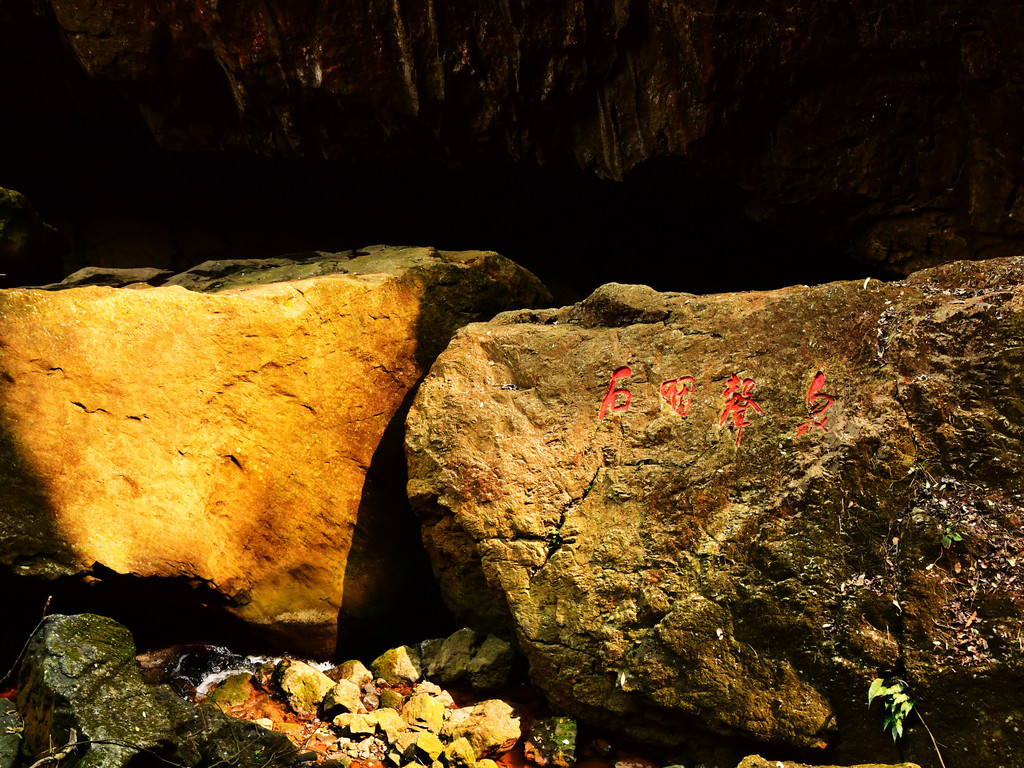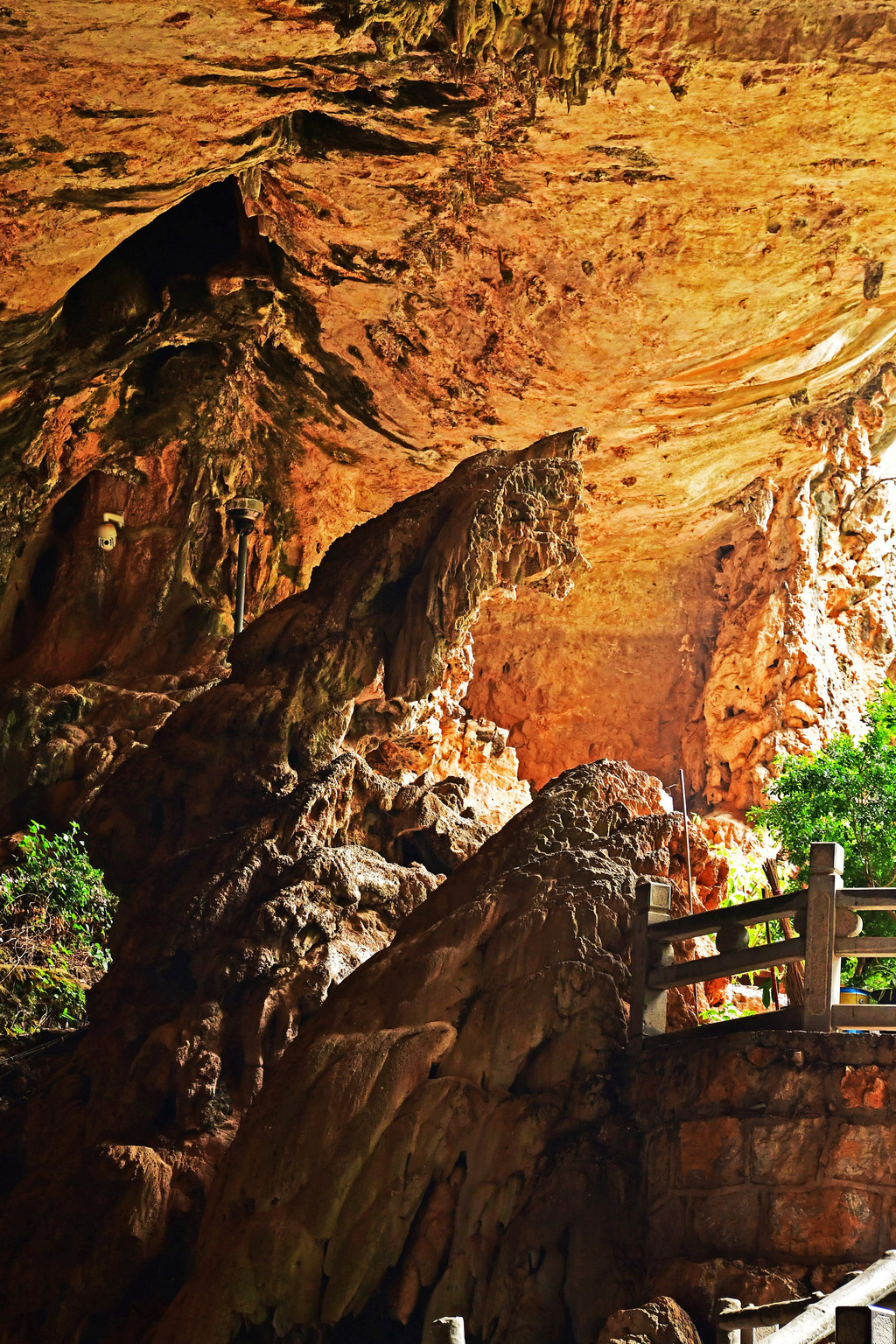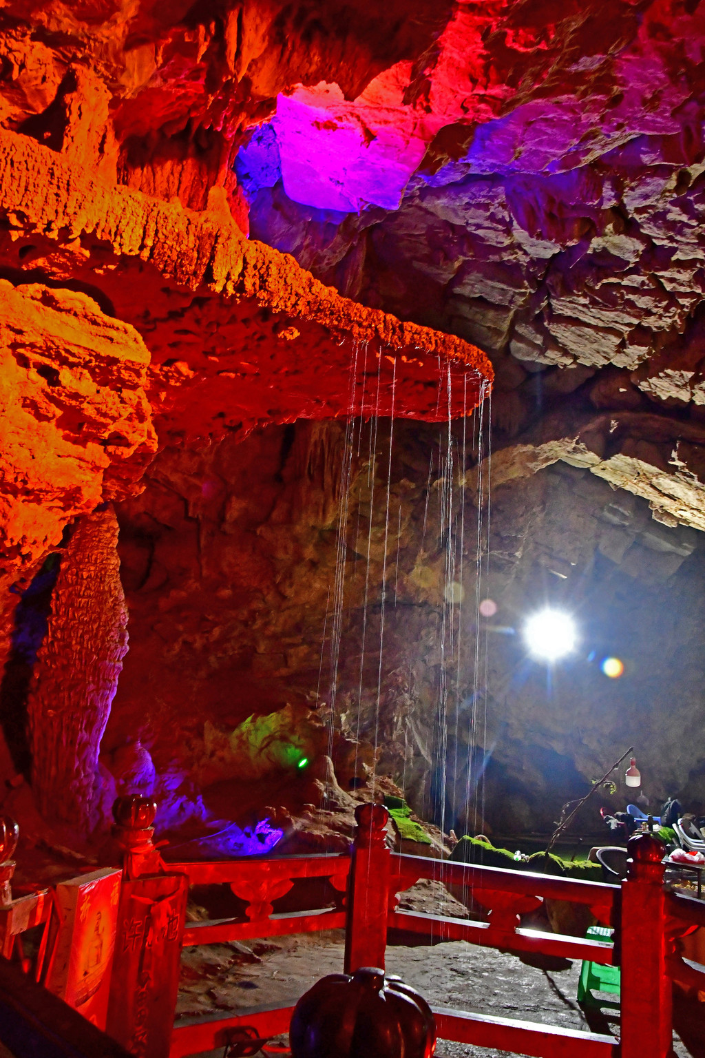 古河穿洞:是古暗河道在长期冲刷侵蚀岩石形成的潜流式洞穴。后来因地壳隆起,河流改道,使得古河道悬于河岸的半腰,形成洞中洞的自然奇景。