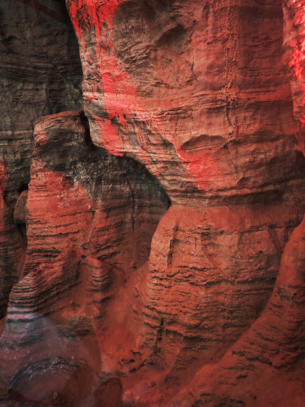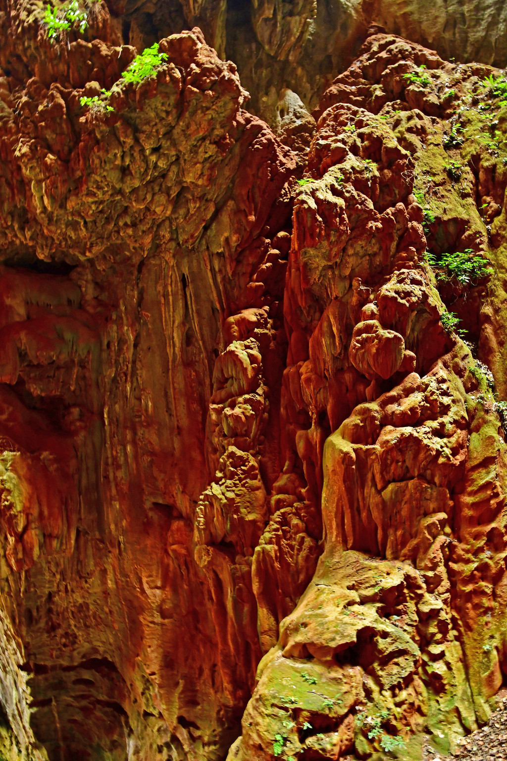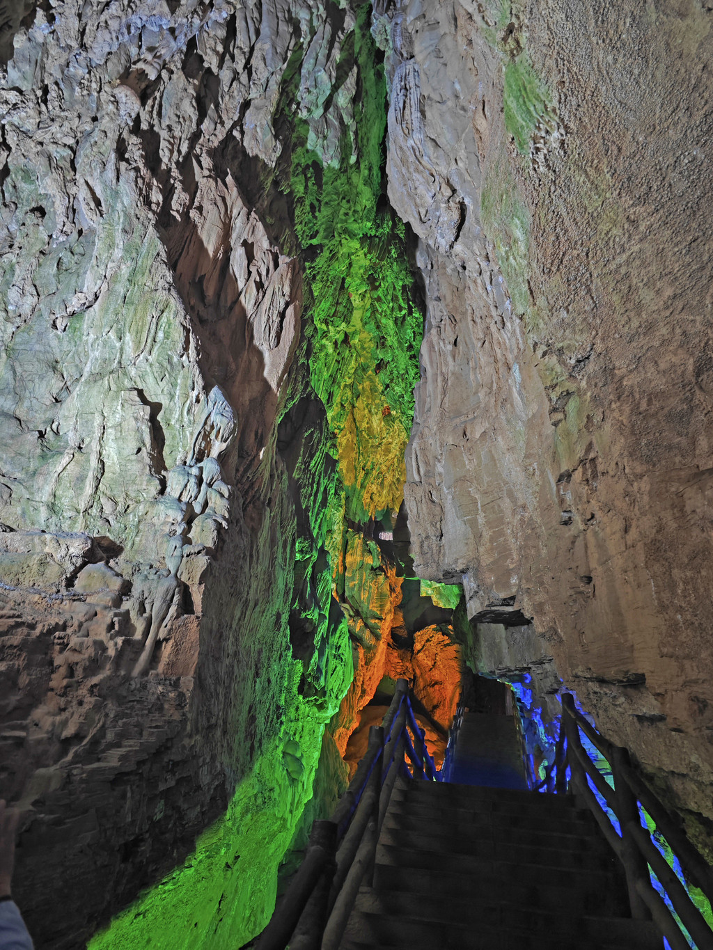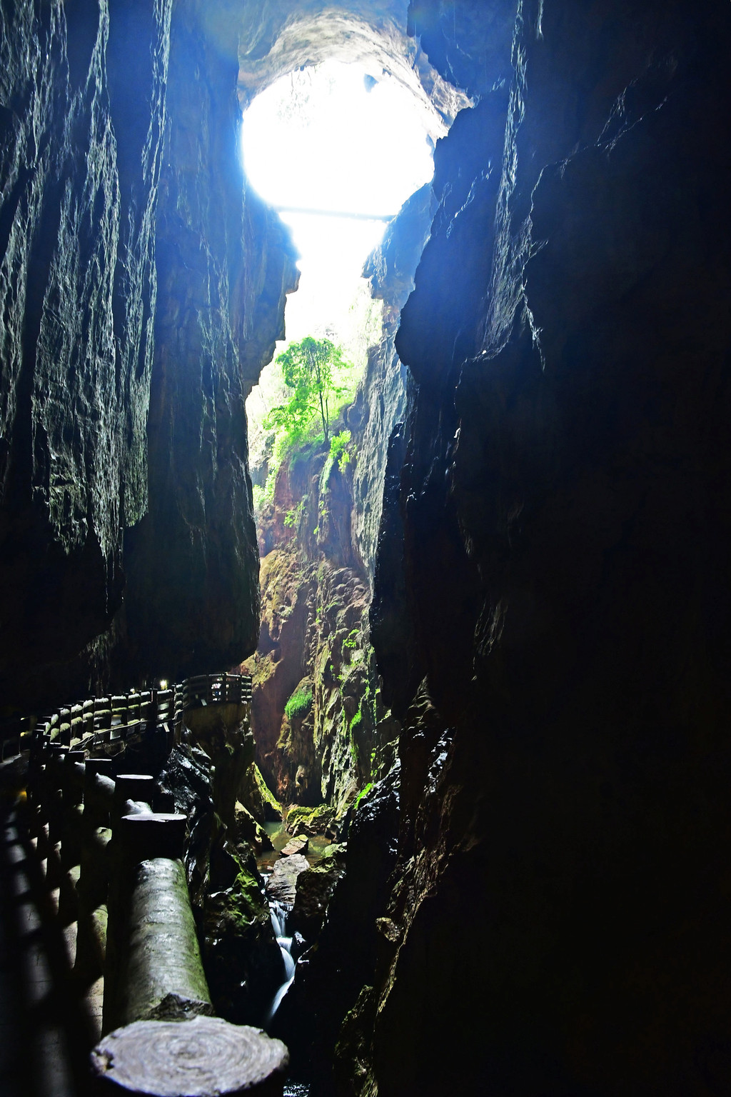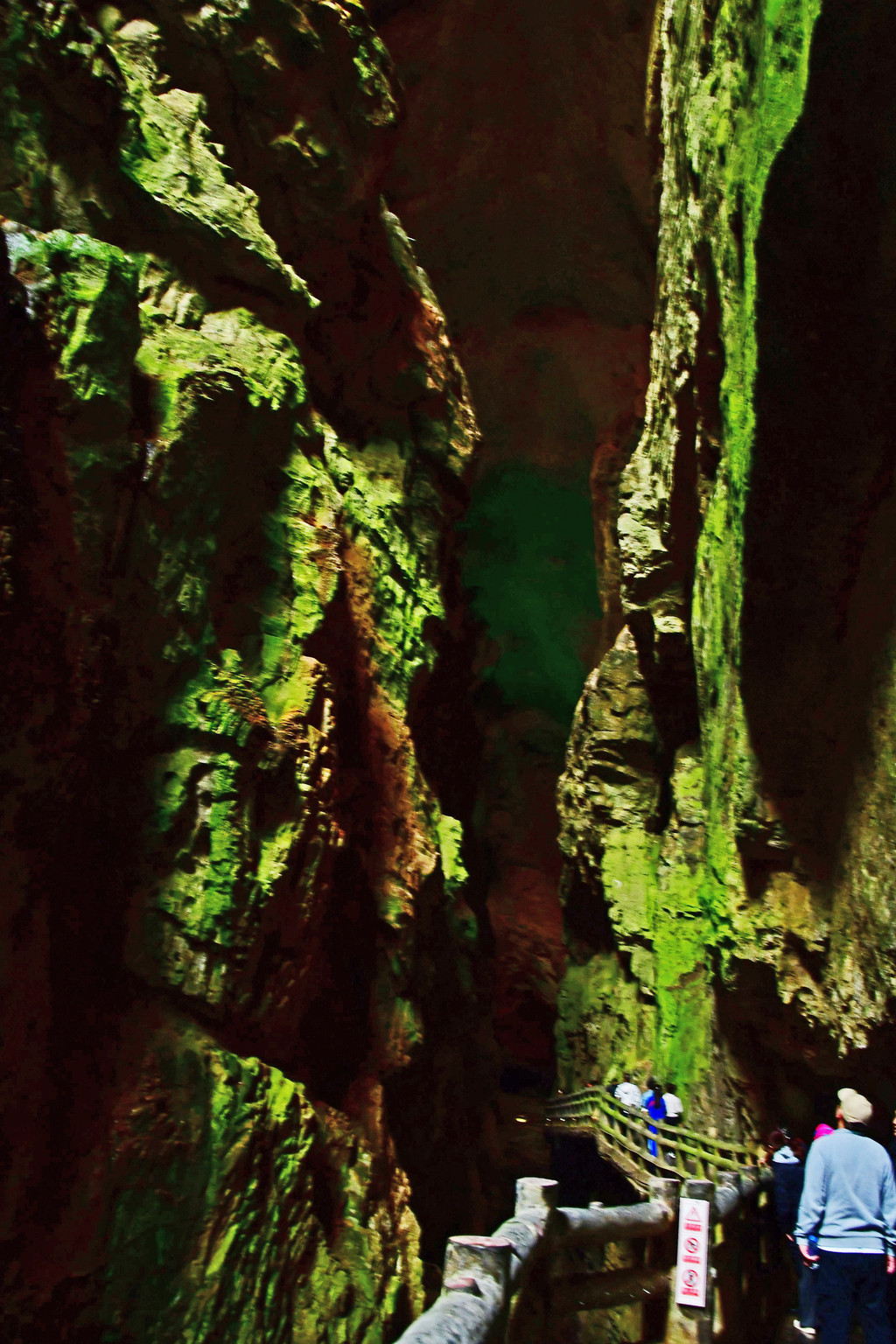 惊心动魄。峡长700米,是国内所发现的最为壮观的地下大峡谷,两岸刀劈斧削一般,峡底到洞顶将近百米 ,峡中最窄处仅只三、四米宽,游人走过无不感到惊心动魄 。