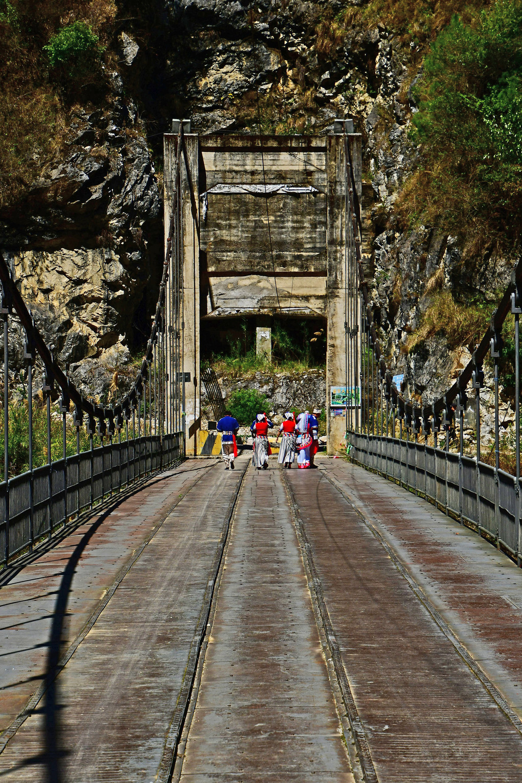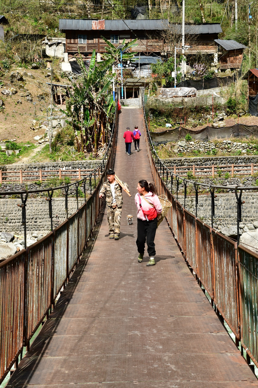 在贡山丙中洛大尼当的怒江两岸,矗立着怒江“三代桥”。最早一座为朝红桥,建于上世纪60年代,结构为钢索木板吊桥,仅能用于人畜通行,现这座桥已废弃无法通行,仅作为人文景观保留;第二座建于2004年,桥体为钢缆水泥吊桥,桥面为钢板铺成,一次仅供一辆汽车交替通行;直至2017年,随着国道G219线的贯通,怒江“大尼当公路大桥”正式建成通车。至此,怒江“三代人、三代桥”连通着怒江两岸。