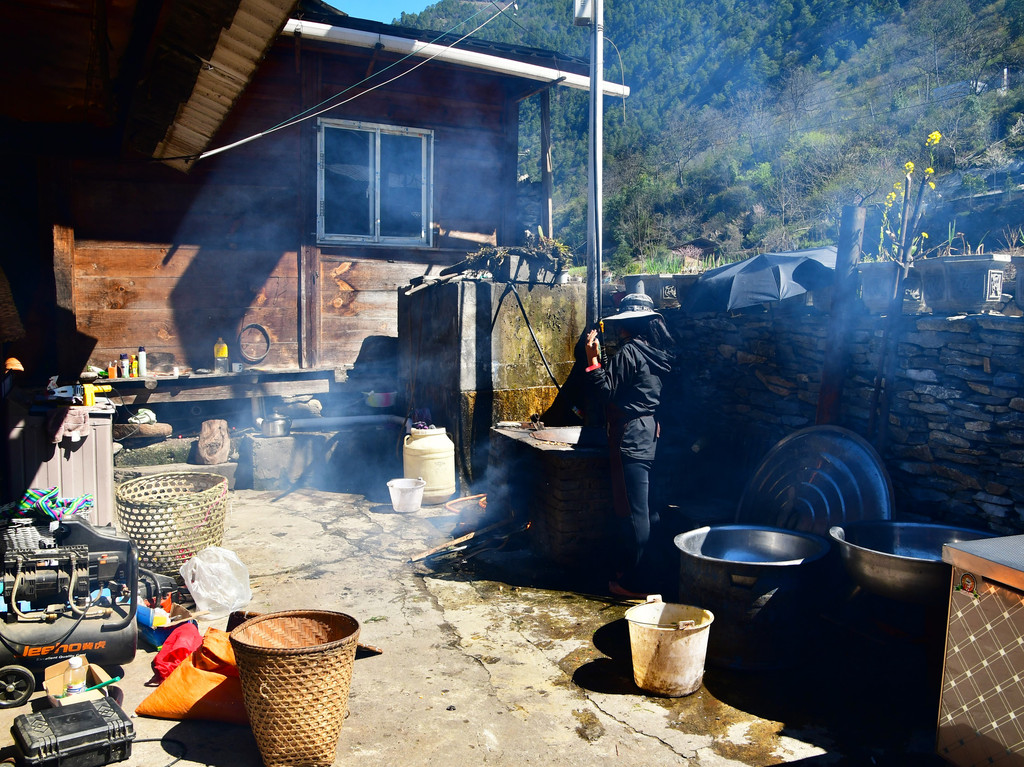 青那桶村民居依山而建,错落有致。村里的建筑多为干栏式木楞房,具有黑色、高脚、木墙的特征,反映了当地怒族人的生活习俗和建筑风格。
