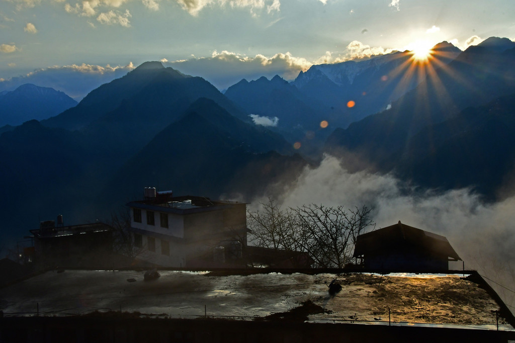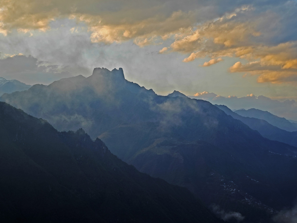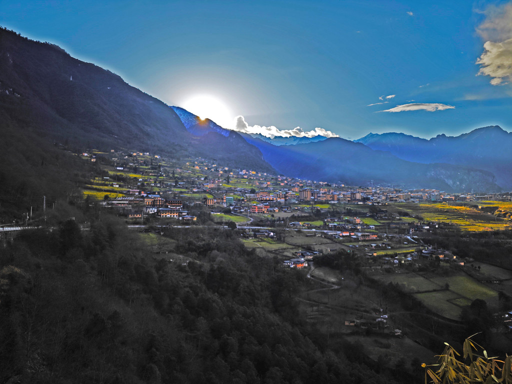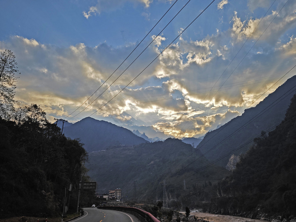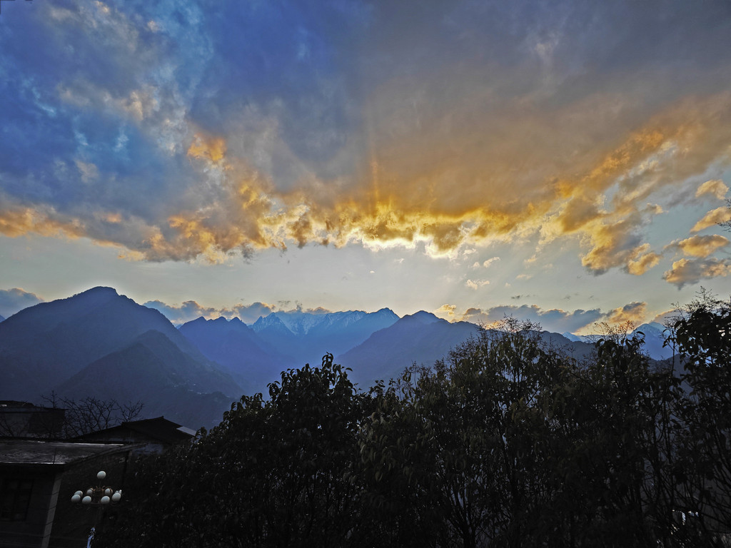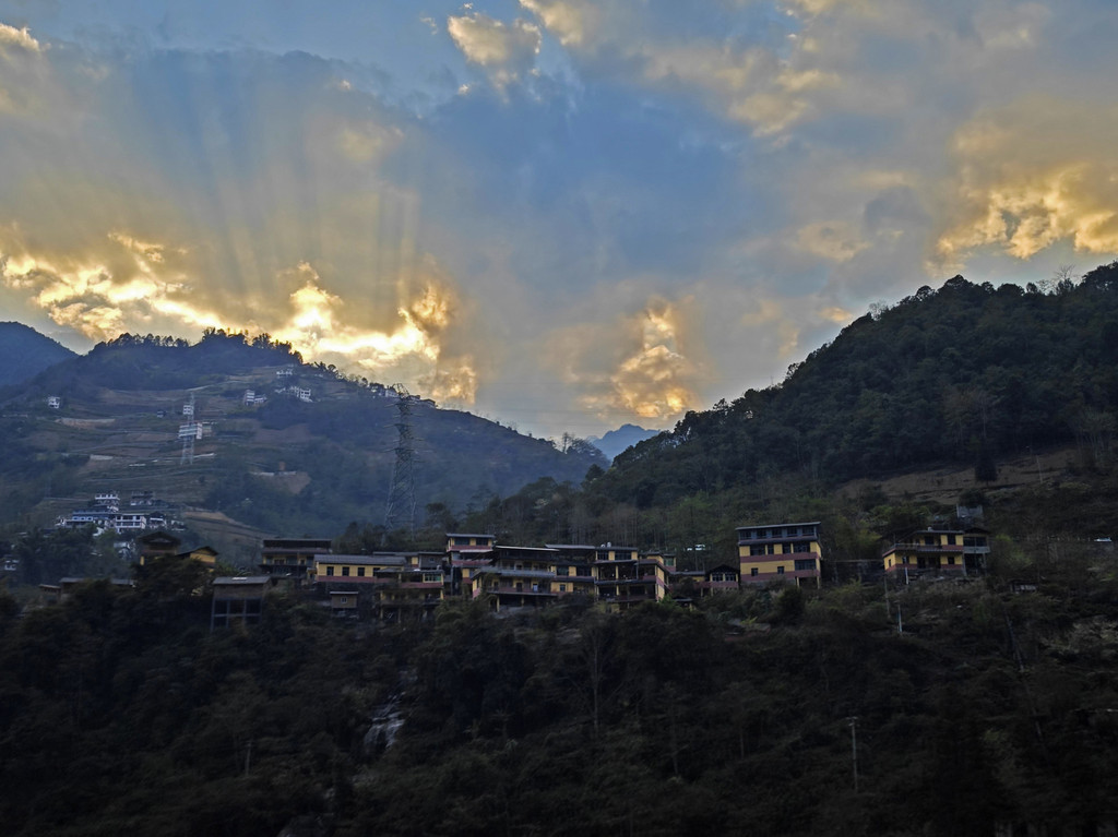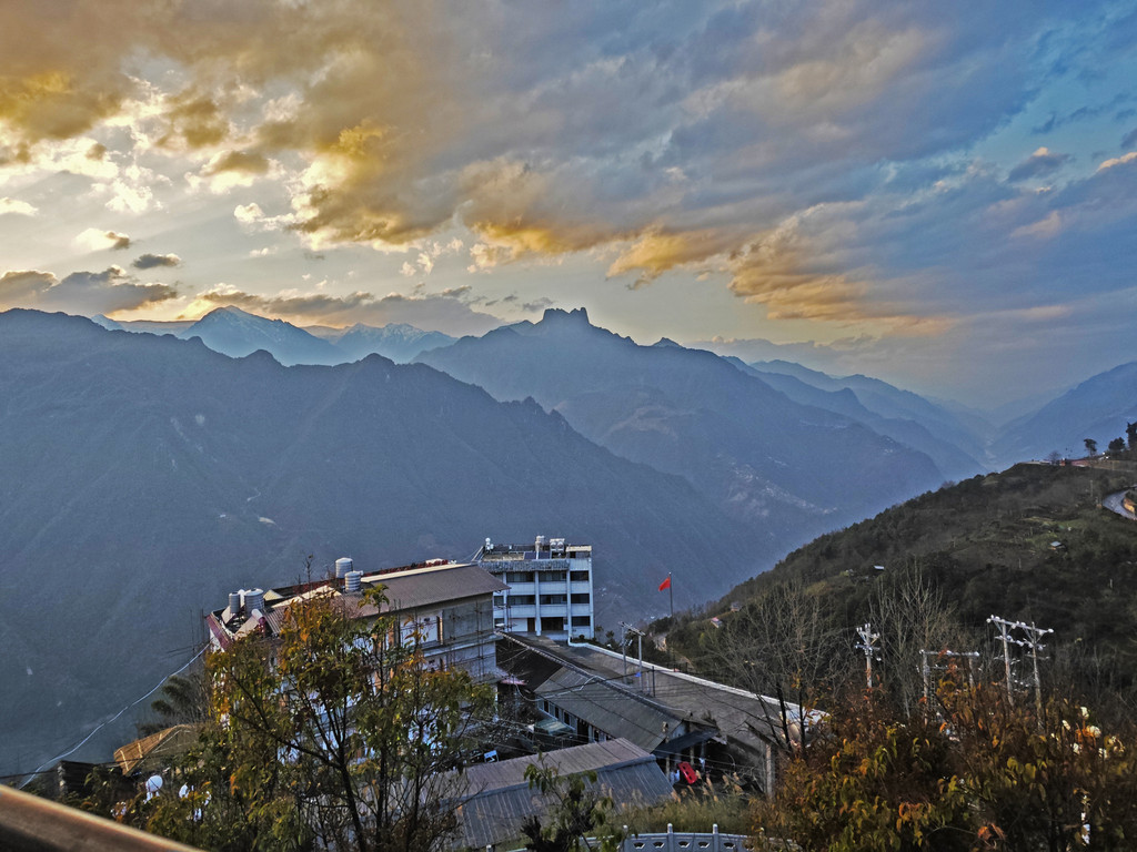 下午5点多,我们正打算离开知子罗老城返回老姆登村时,雨停了,天开始放晴,接着太阳出来了,我们太激动了,赶紧跑到怒族博物馆三楼,欣赏雨过天晴后夕阳西下的美景,我们被上苍温柔以待,幸福满满。