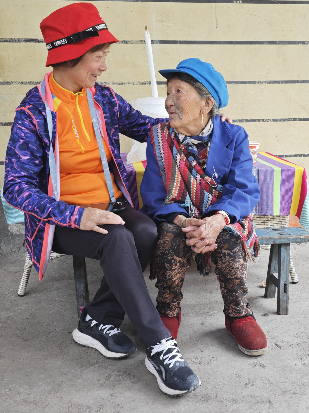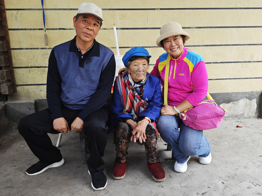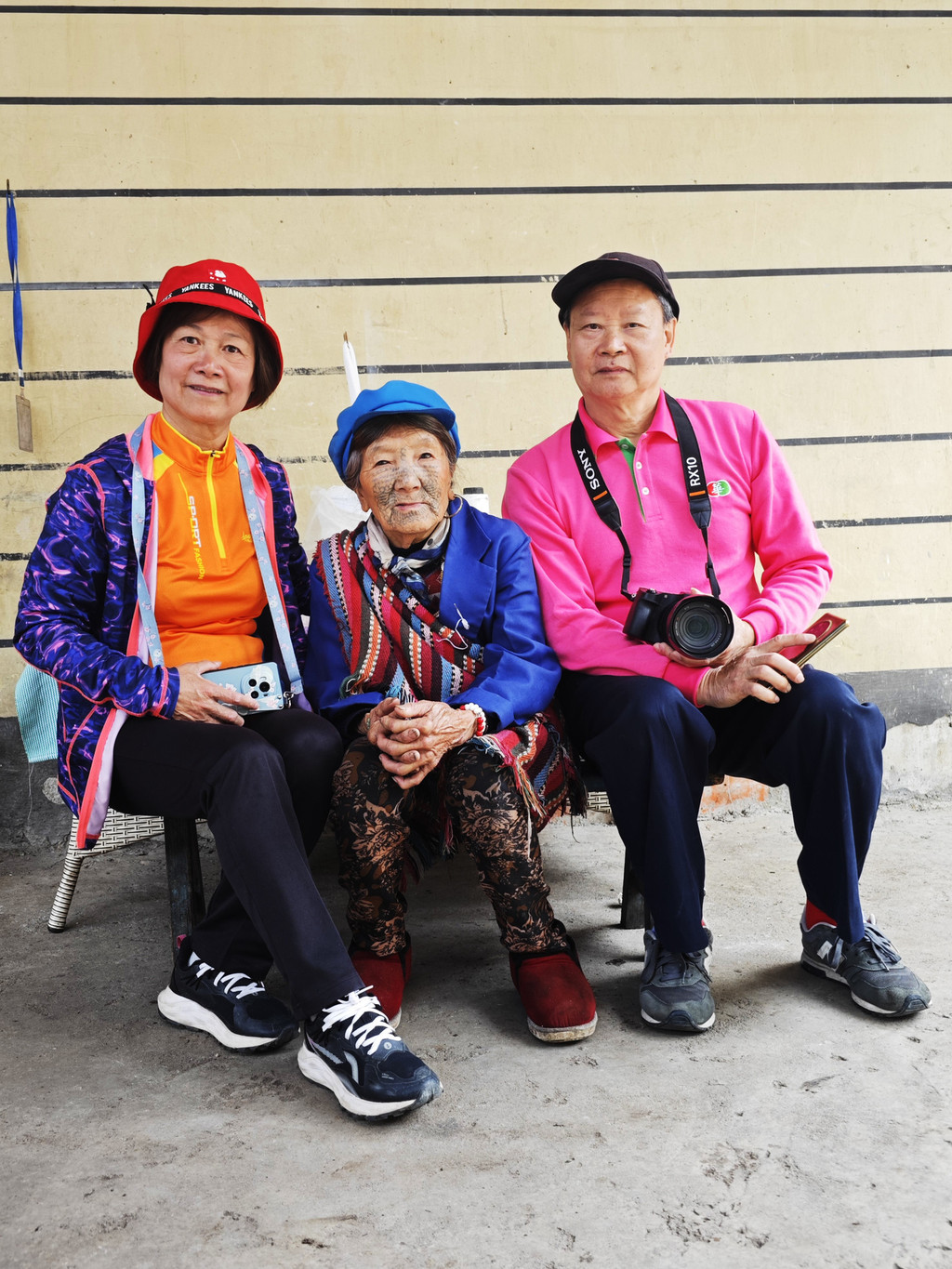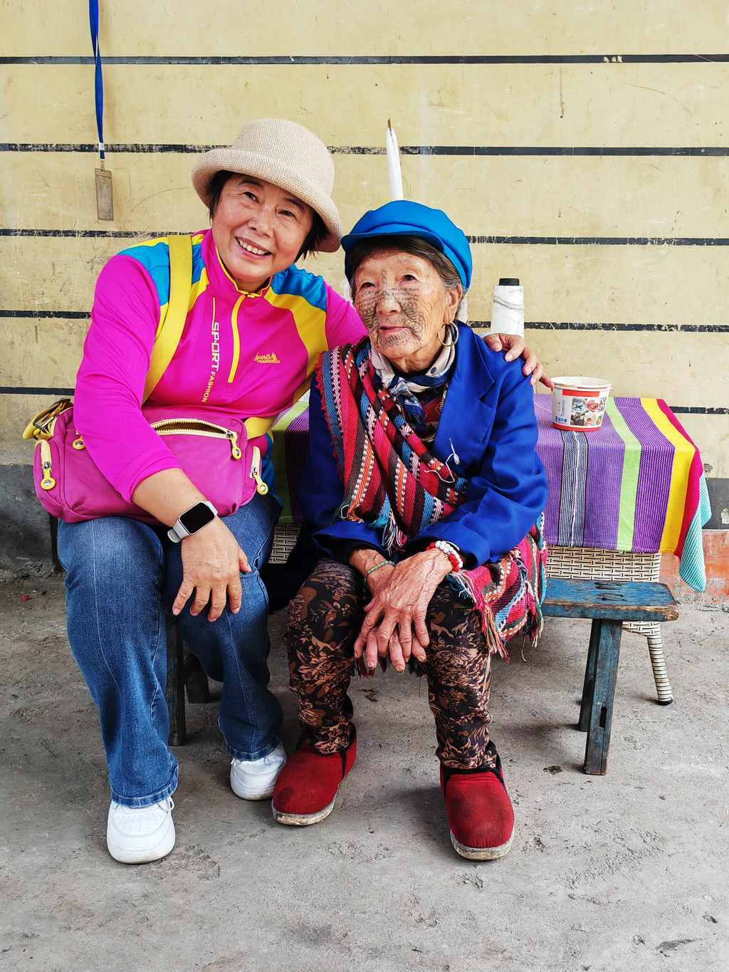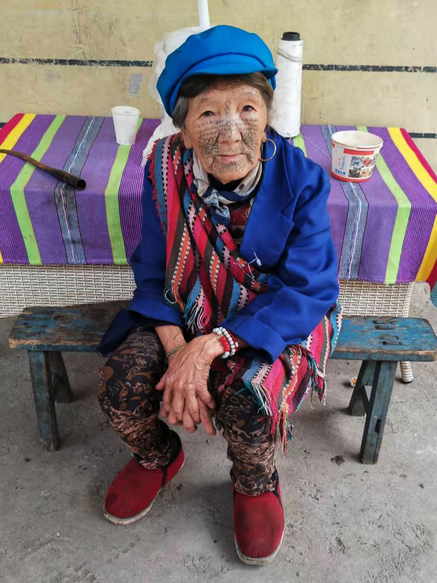 纹面女在哪里呢?见到吊桥就有村庄,我们一路寻访,功夫不负有心人,终于在龙元村见到即将永远消逝的独龙江“纹面女”——江林青老奶奶。独龙族纹面女是云南省怒江州独龙族妇女特有的传统习俗,以面部纹青蓝色图案为特征,关于纹面女历史原因存在多种说法,主流观点为避免外族劫掠(藏族土司曾强掳独龙族女性为奴,纹面以自保)。江林青老奶奶已经85岁了,看着身体还很健朗,依然操持家务和农话,她还带我们参观了她的菜地。