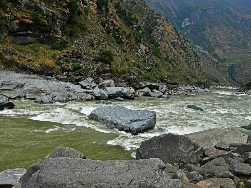 金满银滩是位于怒江大峡谷一转弯处的观景平台,以其诗意的名字和独特的自然风光著称。其名称源于傍晚阳光照射在以石头为主的江滩时,石头反射出的金色与银色光芒,形成“水急流银花金花满地舞”的唯美景象。可是我们到达时,天气差强人意,迎接我们的是:大阴天,有马上要下雨的迹象,网友们分享的那种:“被怒江水冲击的江中石头在阳光的照射下呈现出蓝色玉石般透明的景象,视觉效果独特”,我们没有体验到。