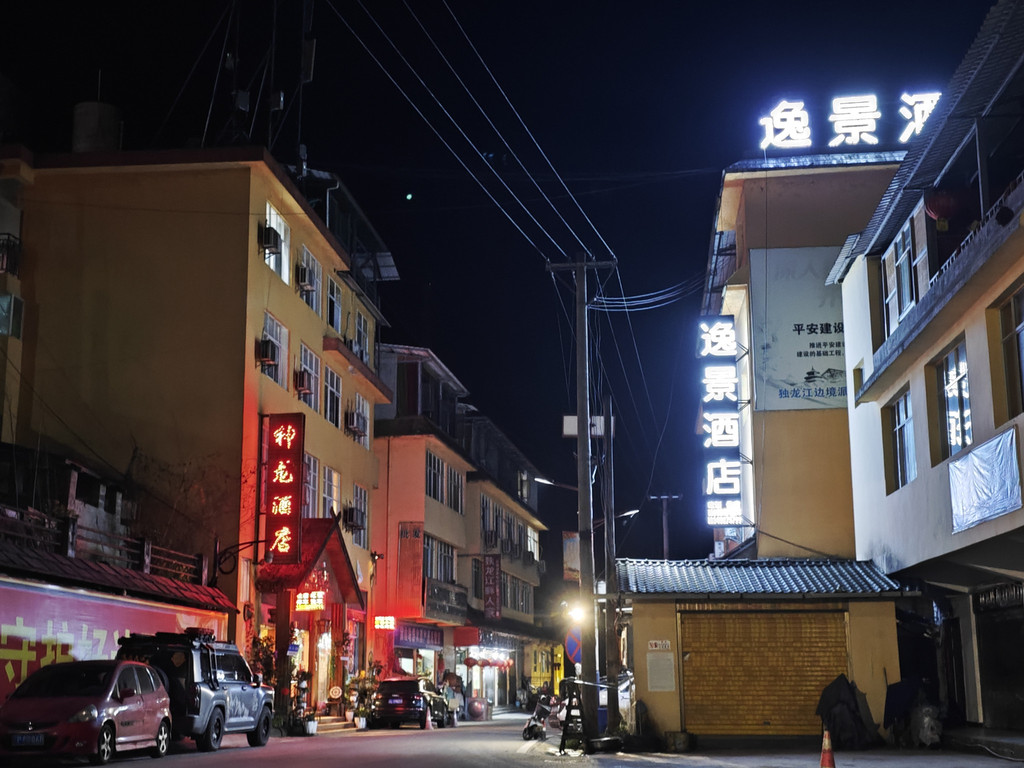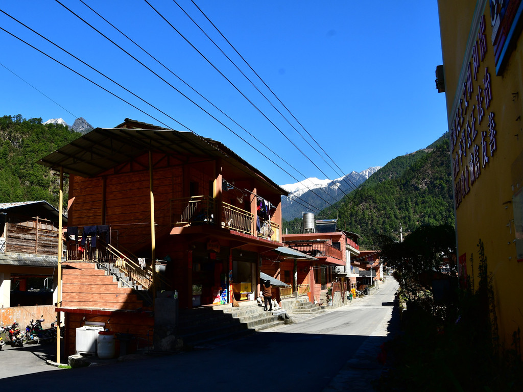丙中洛地处滇西北三大山脉——高黎贡山、怒山、云岭与三江——怒江、澜沧江、金沙江形成的“三江并流”核心区,是怒江大峡谷最北端的乡镇。这里地势北高南低,最高峰为嘎娃嘎普雪山,海拔5128米,最低海拔则为与捧当乡交界处的江面,约1430米。乡政府驻地丙中洛坝子海拔1750米,四面环山,雪山环绕,景色如画。也可以理解为地处怒江大峡谷的尽头,滇藏交界处,被雪山环抱,江河滋养。这里以壮丽的自然景观著称,尤其是怒江第一湾,江水在这里形成了一个半圆形大湾后继续向南流去。丙中洛镇总面积823平方千米,辖4个村,总人口6355人(2017年数据)。丙中洛是藏族、怒族、傈僳族、独龙族等多个民族的聚居地,多元文化的交融使得这里成为“人神共居”的世外桃源。傍晚7点多,我们来到了仅有一条商业街的丙中洛镇,可能是旅游淡季的原因,街上行人寥寥无几,一大半的商铺已经关门了,我们选择了一家藏族餐馆用餐,性价比很高哦!。