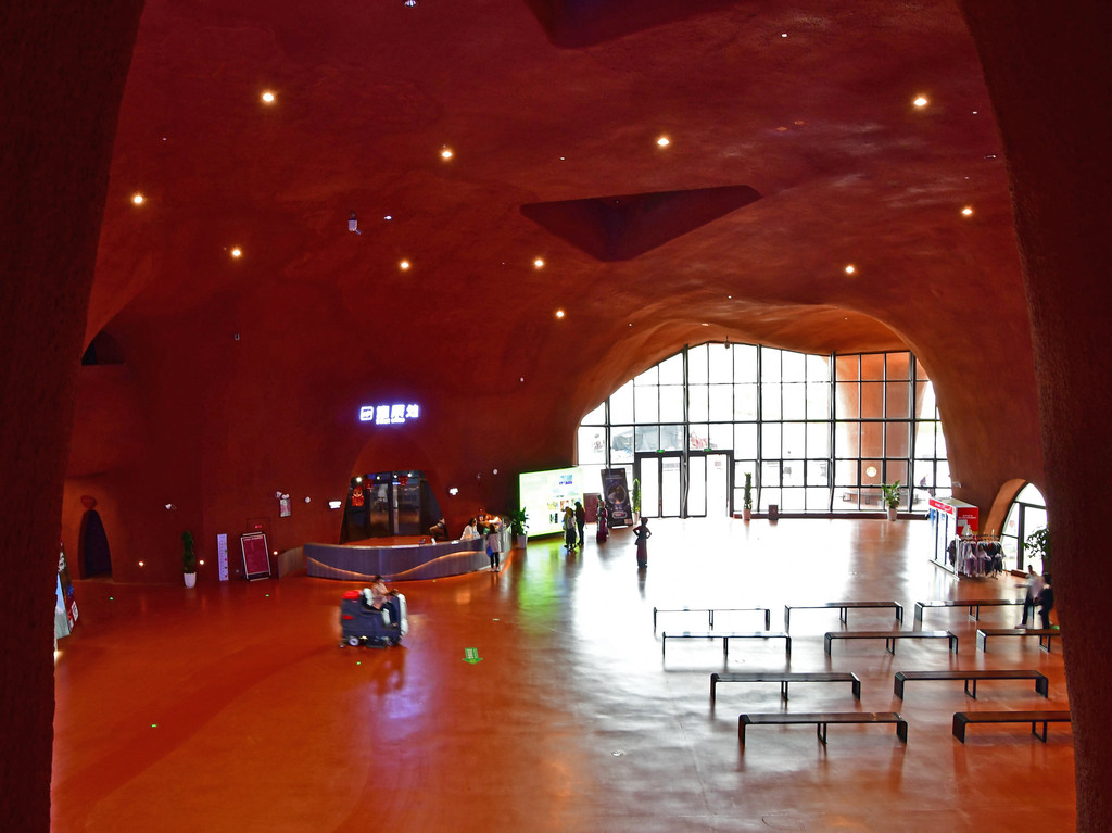 雄狮大厅总面积15000平方米,为世界上最大的地下广场大厅,可容上万人在这里联欢,更为神奇的是,整个大厅顶部有一个完整的板块构成,板块上嵌有几个窝形的漩涡,整个顶部板块可谓天衣无缝。