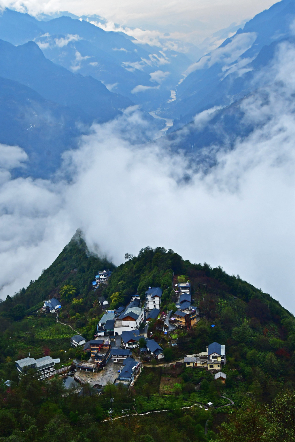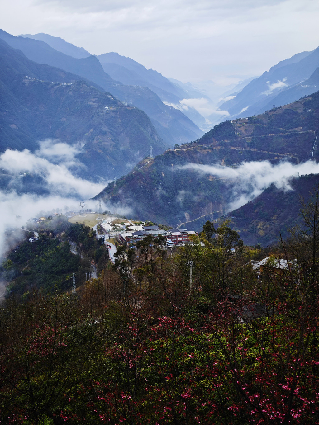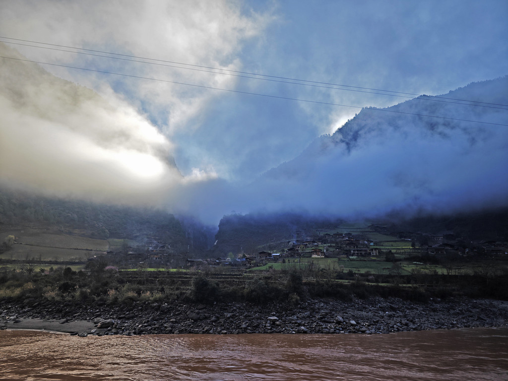 雾里村是云南省怒江傈僳族自治州贡山县丙中洛镇下辖的自然村,位于茶马古道上,背靠碧罗雪山,与高黎贡山隔江相望,怒江环绕其间,被誉为“人神共居的世外桃源”。 根据资料介绍:因峡谷水汽充沛,村庄三面环山、一面临江,常年云雾缭绕,晨昏时分宛如仙境。早上9点我们就驱车来到了位于公路边的雾里怒族原生态聚落景区的观景台,只见隔着怒江的小村庄,隐藏在云雾里,忽隐忽现,亦幻亦真,山林、桃花、木楞房、庄稼点缀其中,不时股股炊烟夹着饭香随着浓雾飘逸,这是仙界的瑶池、这是人间的烟火,对!这里是"人神共居"的世外桃源。。。太阳普照大地时,我们继续下一站:滇藏界。