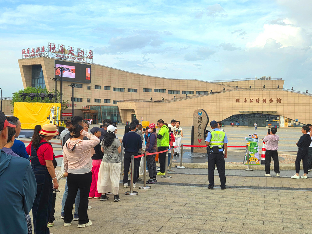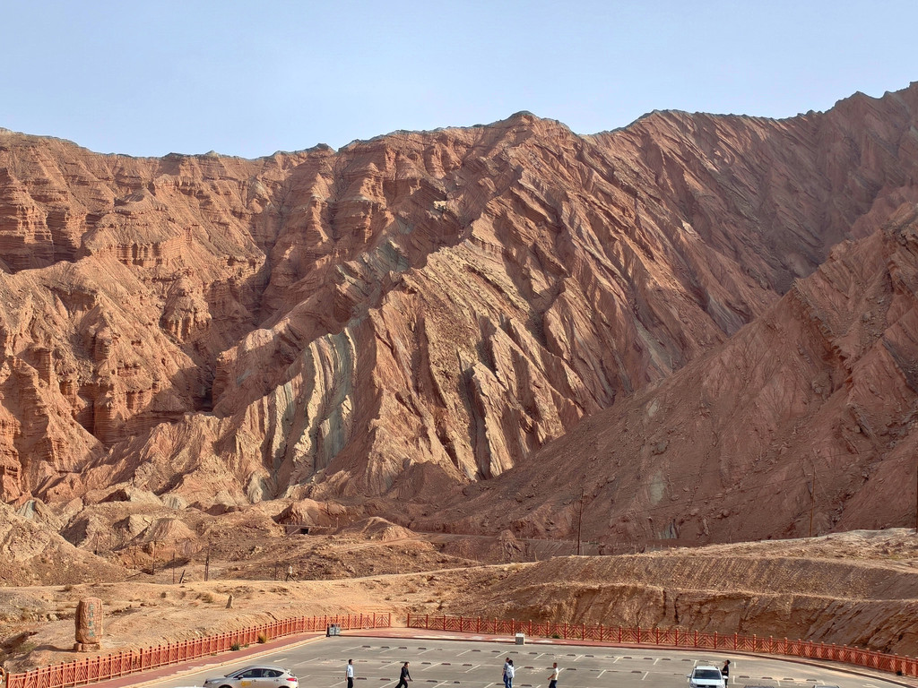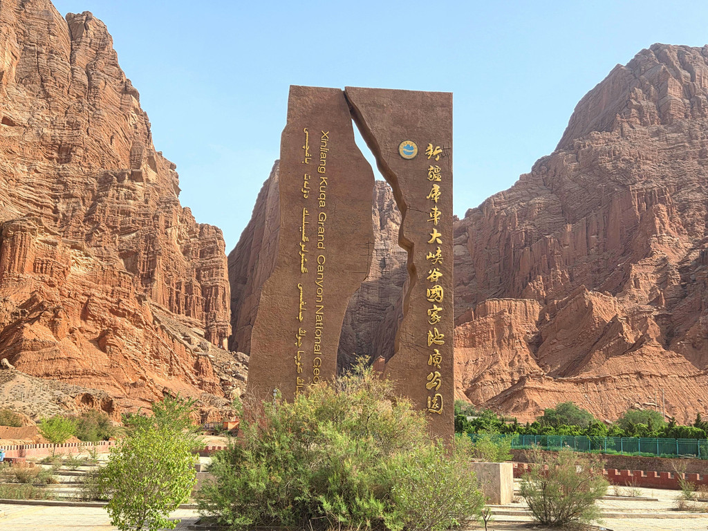 由于我们是从库车出发反向行走独库公路的,自然就先从独库公路南段启程。刚刚进入独库公路,来到独库公路终点纪念碑,虽然车辆很多,但大家都不厌其烦找好停车的位置,排着队拍照留念的,记录下这有特别意义的时刻。