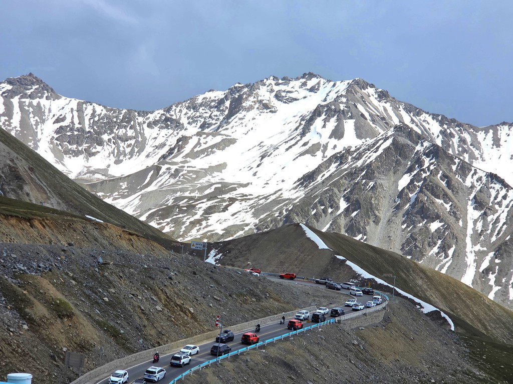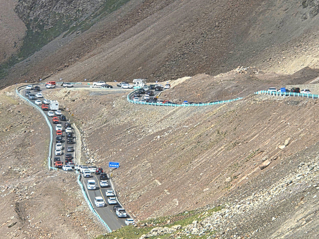 6、近两年独库公路自驾游特别火爆,每逢节假日独库公路塞车成为常态,不少网友戏称独库公路为“堵哭公路”。来独库公路自驾游尽量避开节假日期间,车上还需常备有水和食物,以备不时之需。